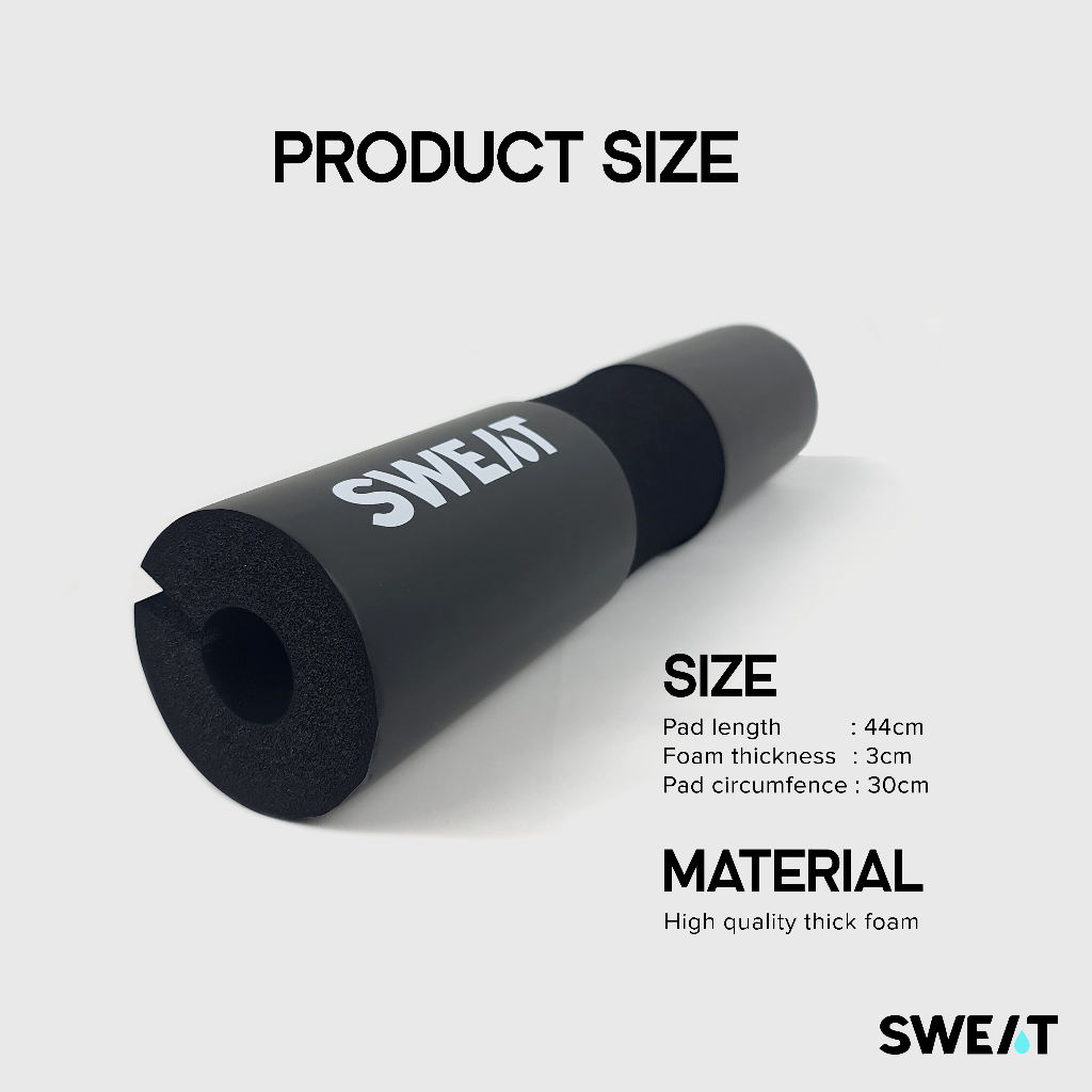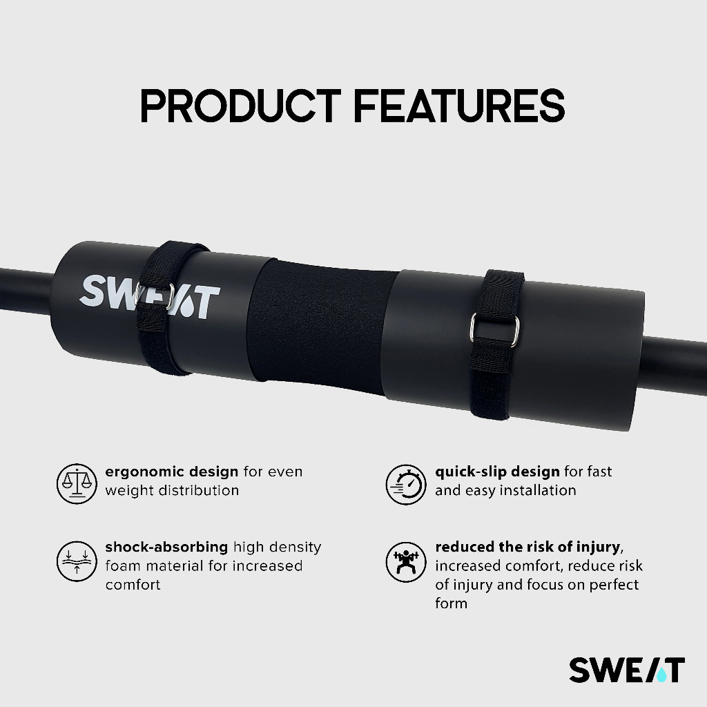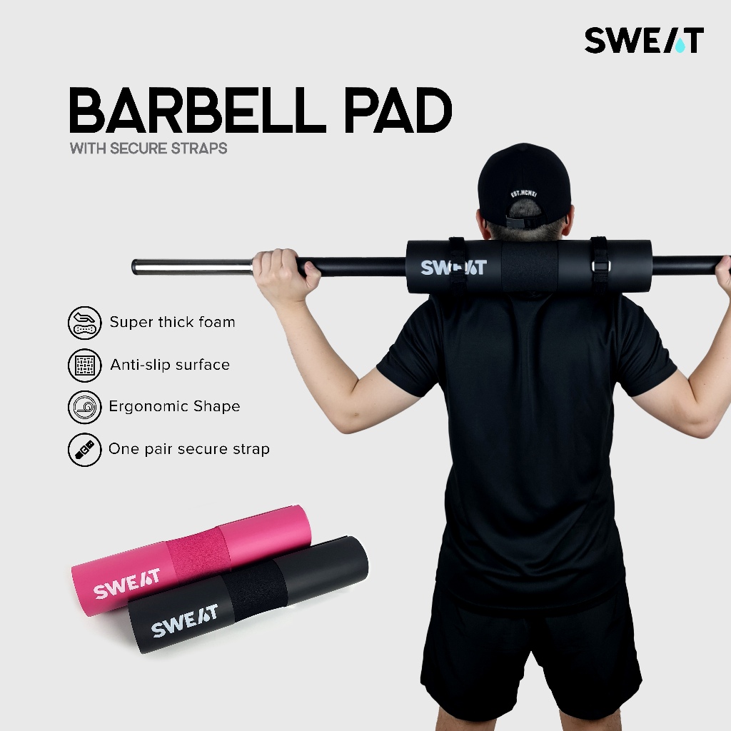 Sweat - Barbell Pad With Secure Straps | Bantalan Barbell Pad Fitness - Pelindung Pundak & Leher Untuk Squat, Hip Thrust