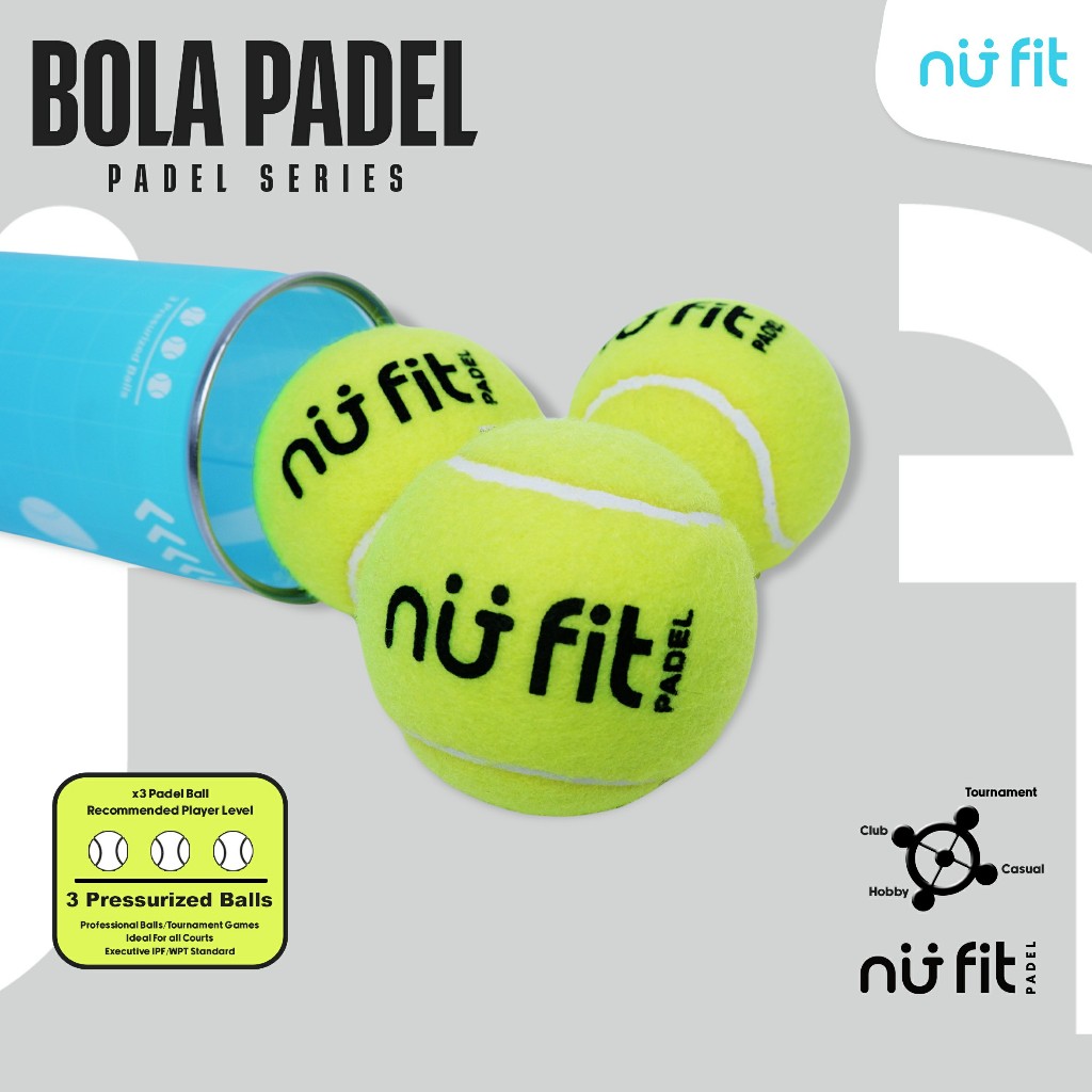 Nu Fit - Bola Padel - Padel Balls Isi 3 - Pressurized Padel Ball - Padel Ball Pro - Padel Ball