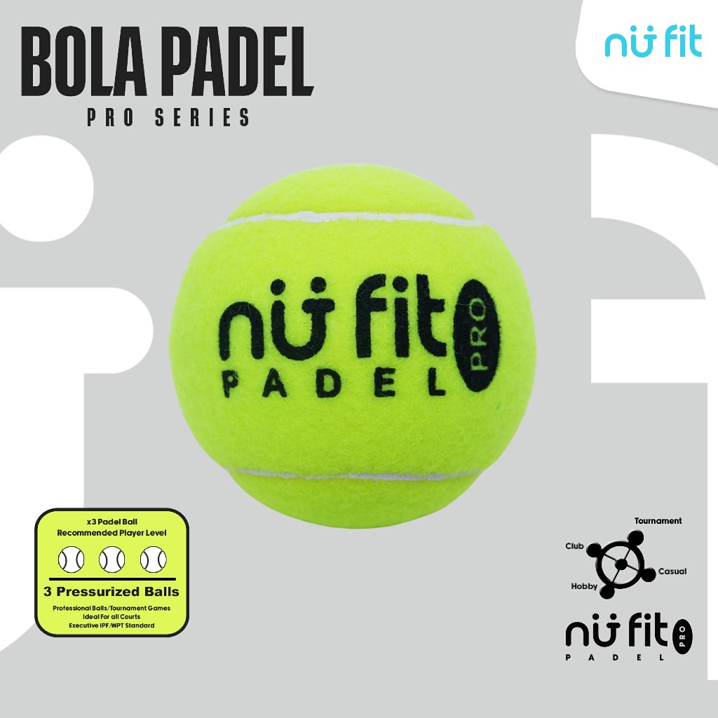 Nu Fit - Bola Padel - Padel Balls Isi 3 - Pressurized Padel Ball - Padel Ball Pro - Padel Ball