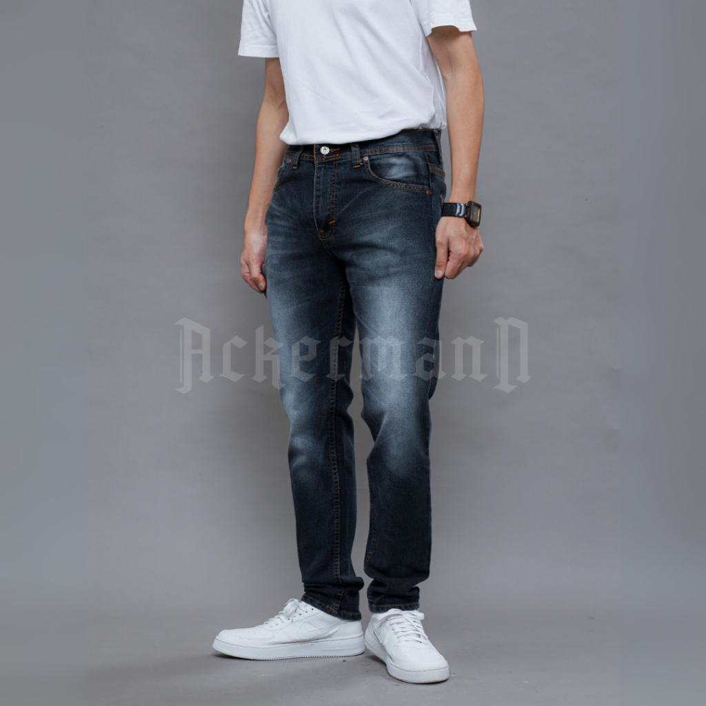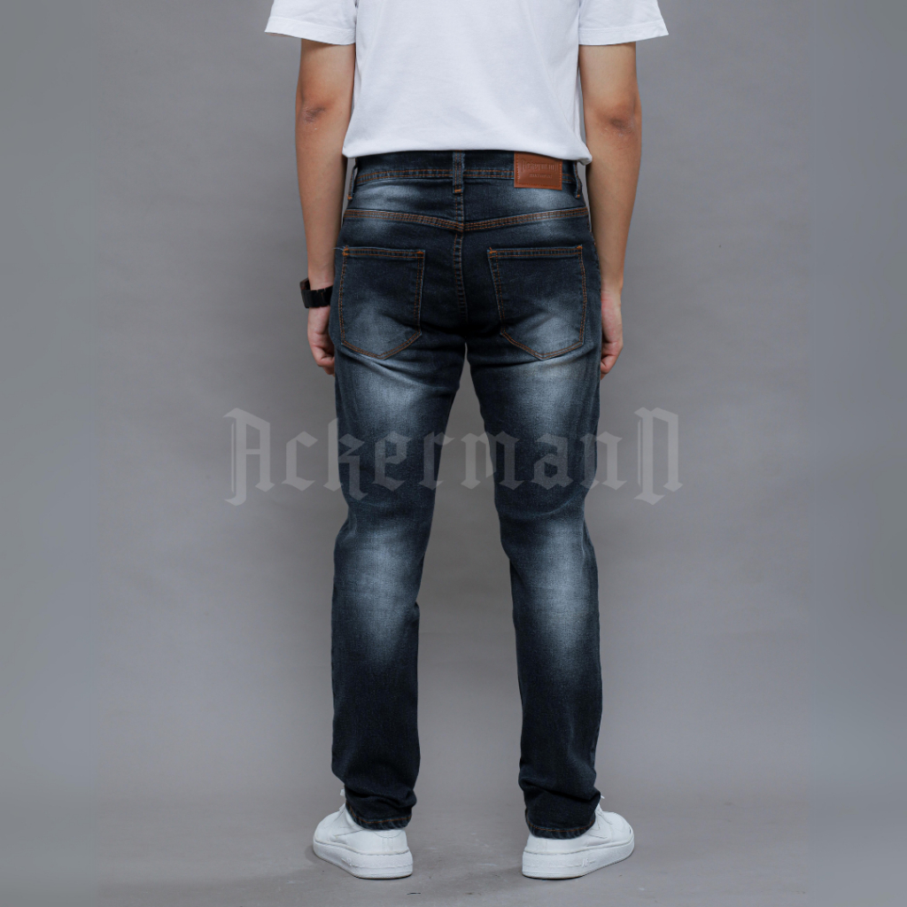 Ackermann - Celana Jeans Denim Pria Celana Panjang Slimfit Snow Black 100Cm Premium