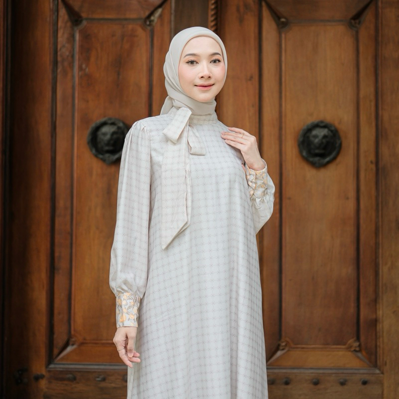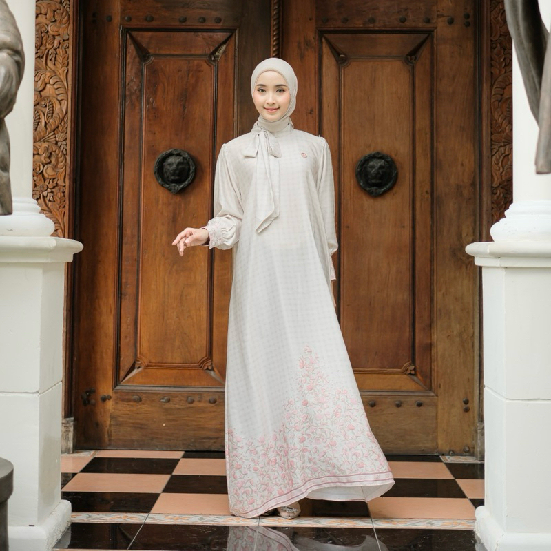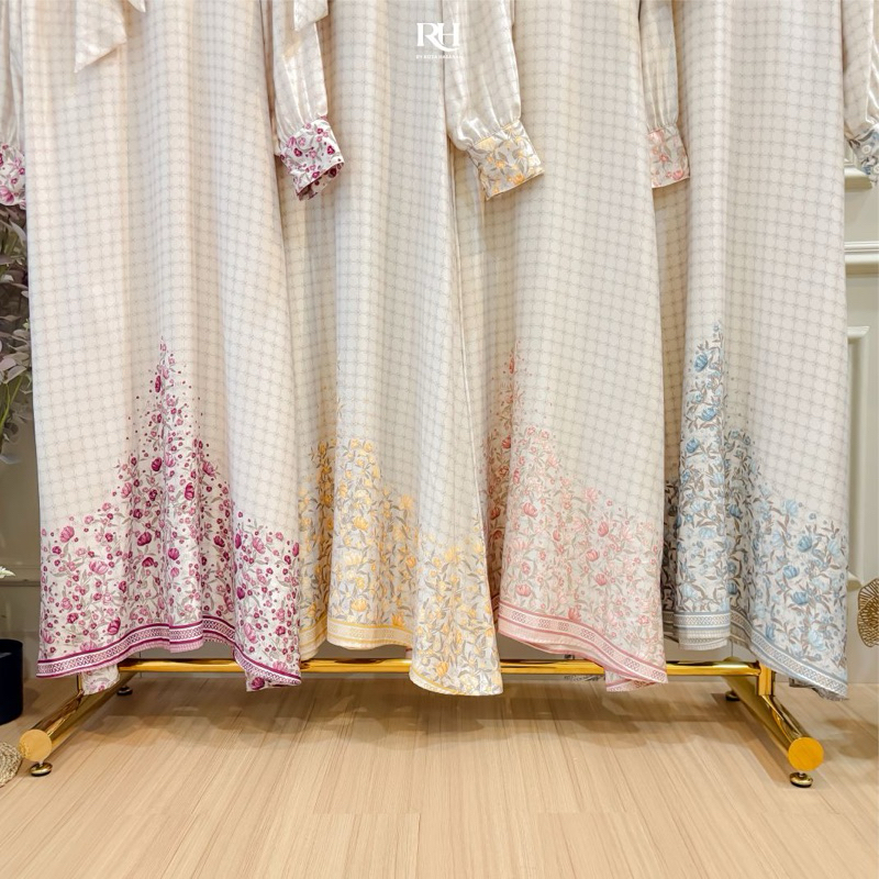 Rh Col Fatimah Dress Panjang Motif Bahan Romario Silk Gamis Muslim Wanita Elegan