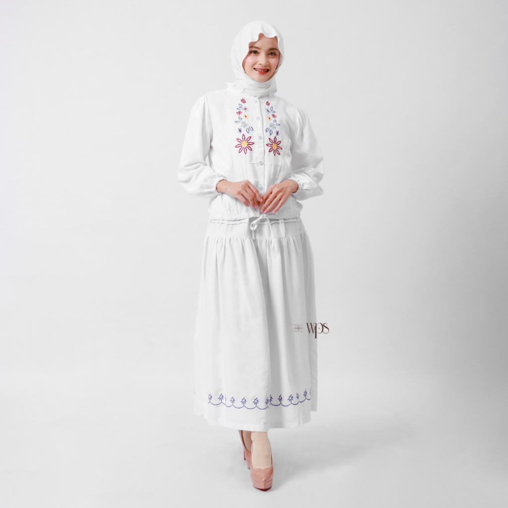 WPS - Camille One set Wanita Hijab Setelan Rok & Atasan Bordir Katun Baju Lebaran Korean Style