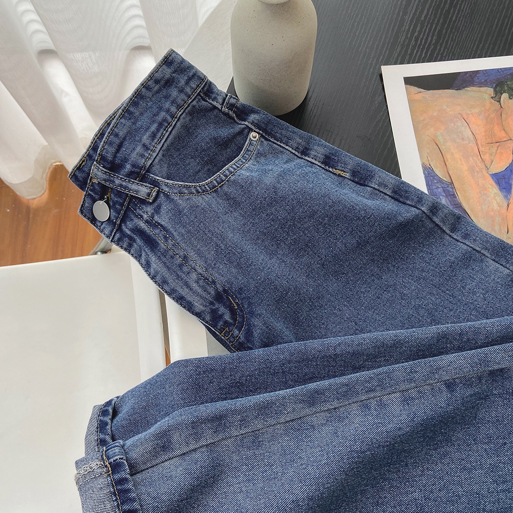 Biru Keren Terbaru warna denim korean style highwaist lurus loose celana jens wanita Import(realpict)