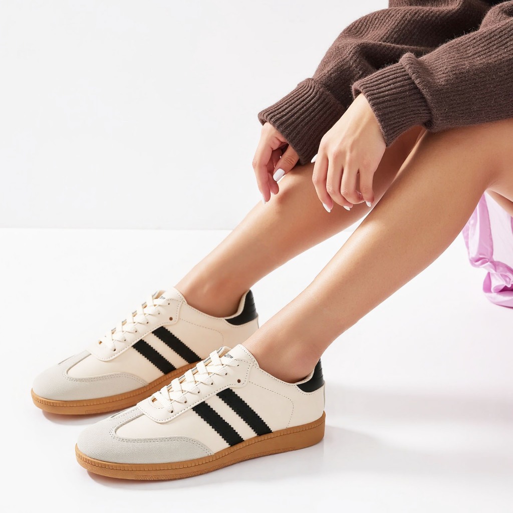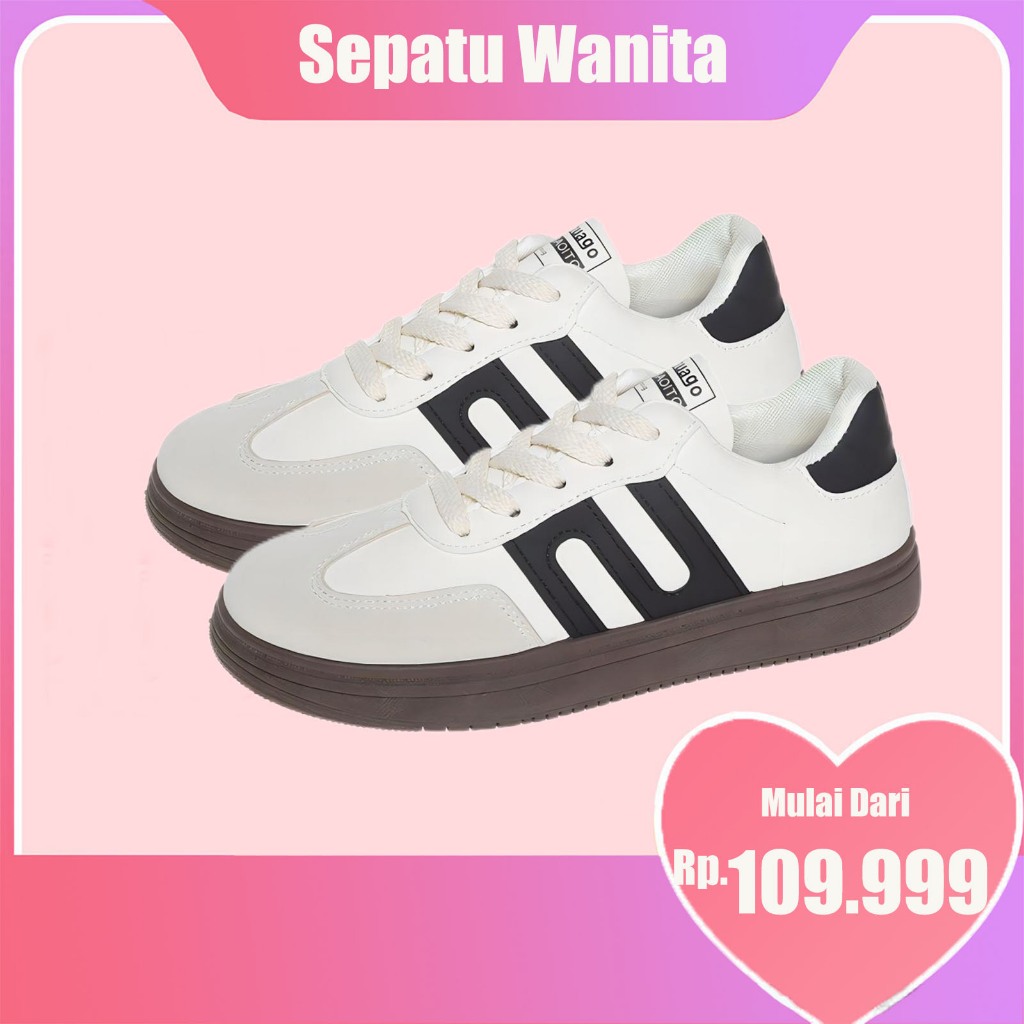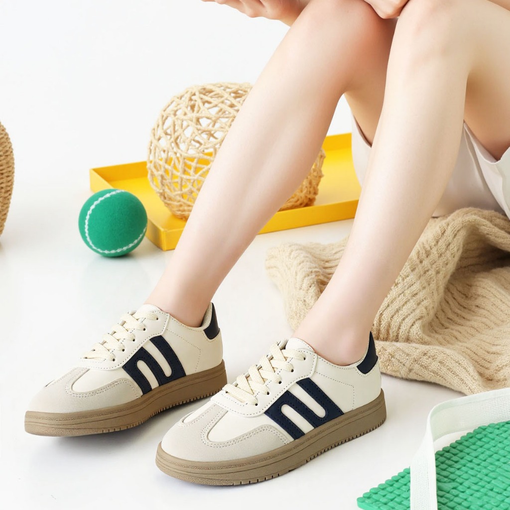 Sepatu Wanita Sam-ba Forrest Gump Bergaya Kasual Nyaman Baru Hitam/Krem ST085