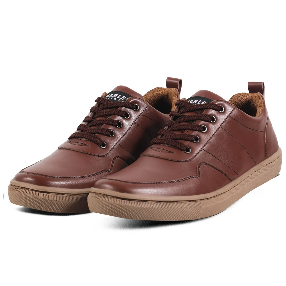 [Mall] Marley Owen 15 Sepatu Sneakers Pria Kets Semi Formal Kerja Kantor Bahan Kulit Sintetis - Coklat