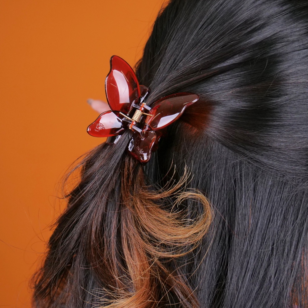 DeClip Jedai Butterfly Haircules Jepit Kupu Gigi 4 Ukuran 4,5cm Warna Coffee
