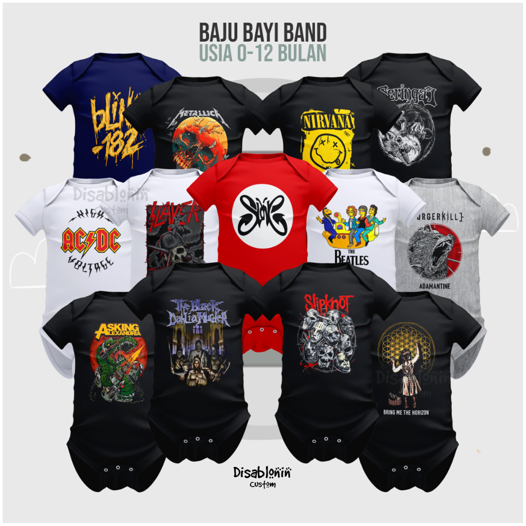 Jumper Bayi Band Metal Rock 0-12 Bulan – Lucu, Viral Motif Metalica The Beatles Nirvana Slank - HDOG
