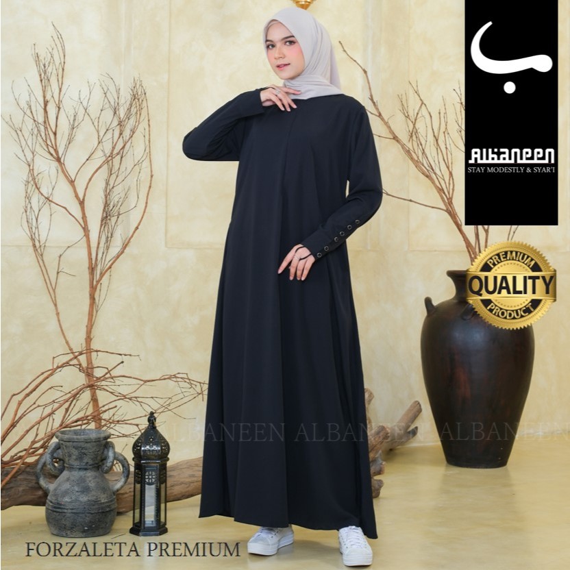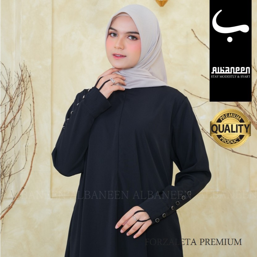 [BARU] Albaneen.syari Abaya hitam Jetblack Premium Cantik | Gamis umroh anti UV hitam mewah polos kancing tangan bahan jet black kekinian