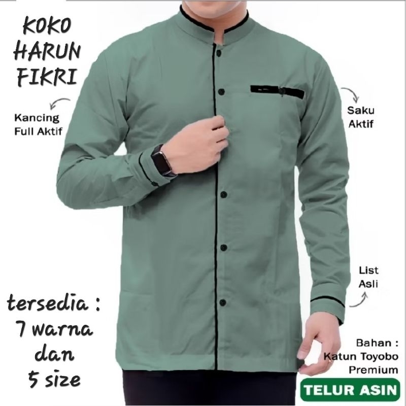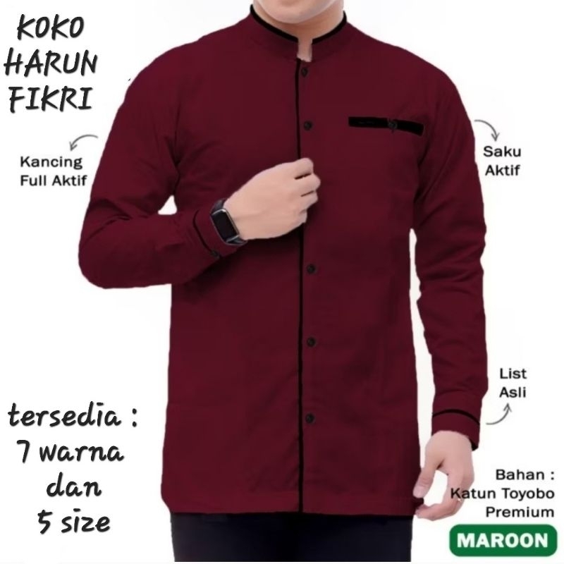 Kemeja Koko Harun Fikri Baju Pria Muslim Lengan Panjang ( Terlaris )