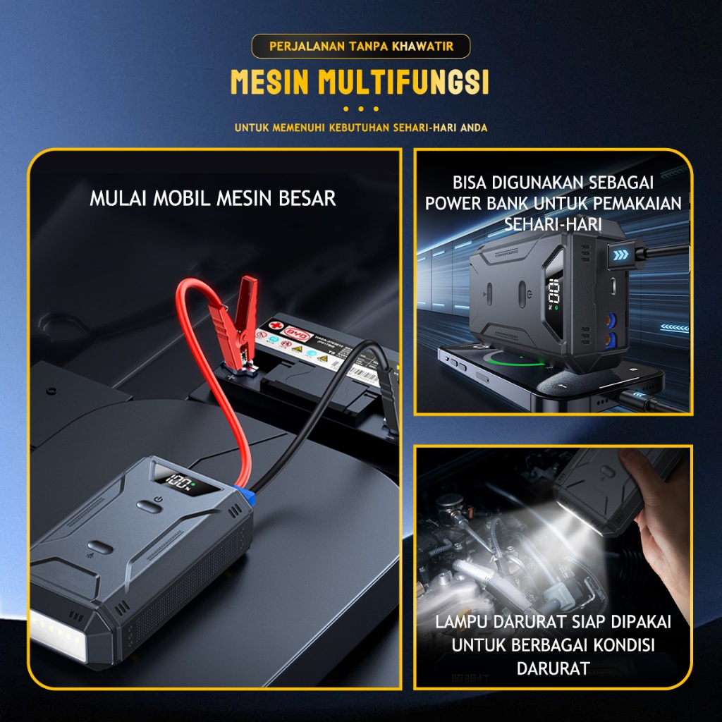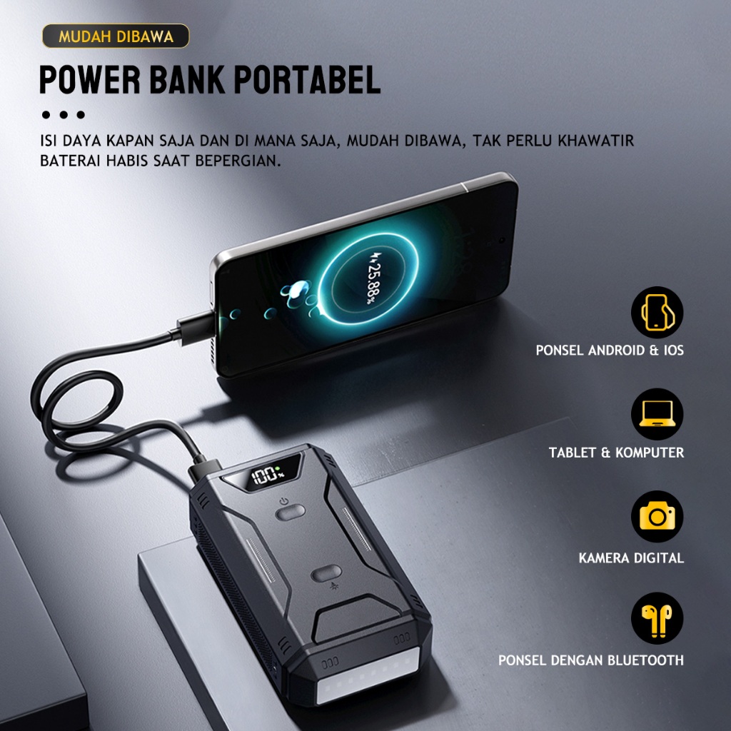 KMILES Jumper Aki Mobil Portable 6000mAh Dengan Power bank Dan Lampu Led Jump Starter Mobil 12V