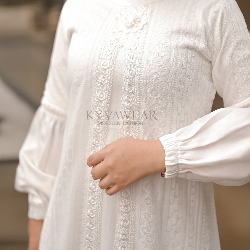 KYVA GAMIS ABAYA TURKEY PUTIH TERBARU RENDA BROKAT EDN 020 PESTA REMAJA MEWAH