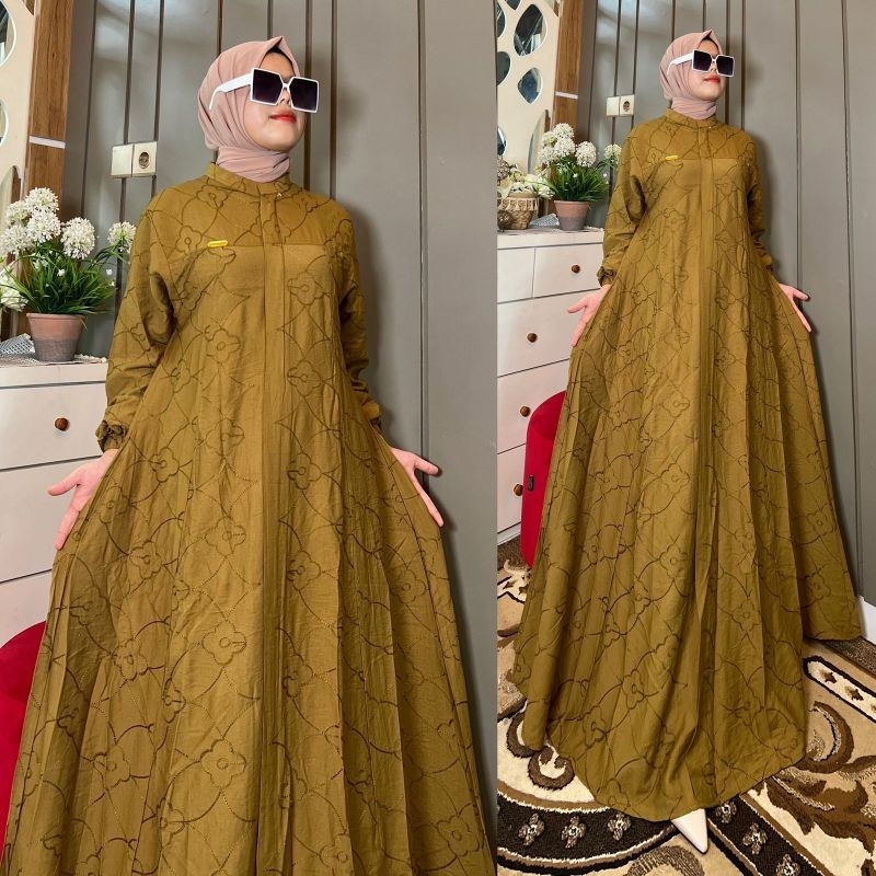GAMIS POLOLINEN BORDIR ORIGINAL CANTIK ADEM DAN BERKELAS | DRESS POLO LINEN | GAMIS NONGKRONG & PESTA |