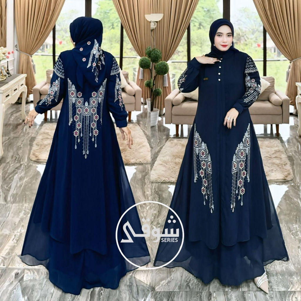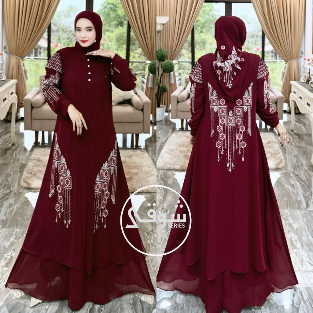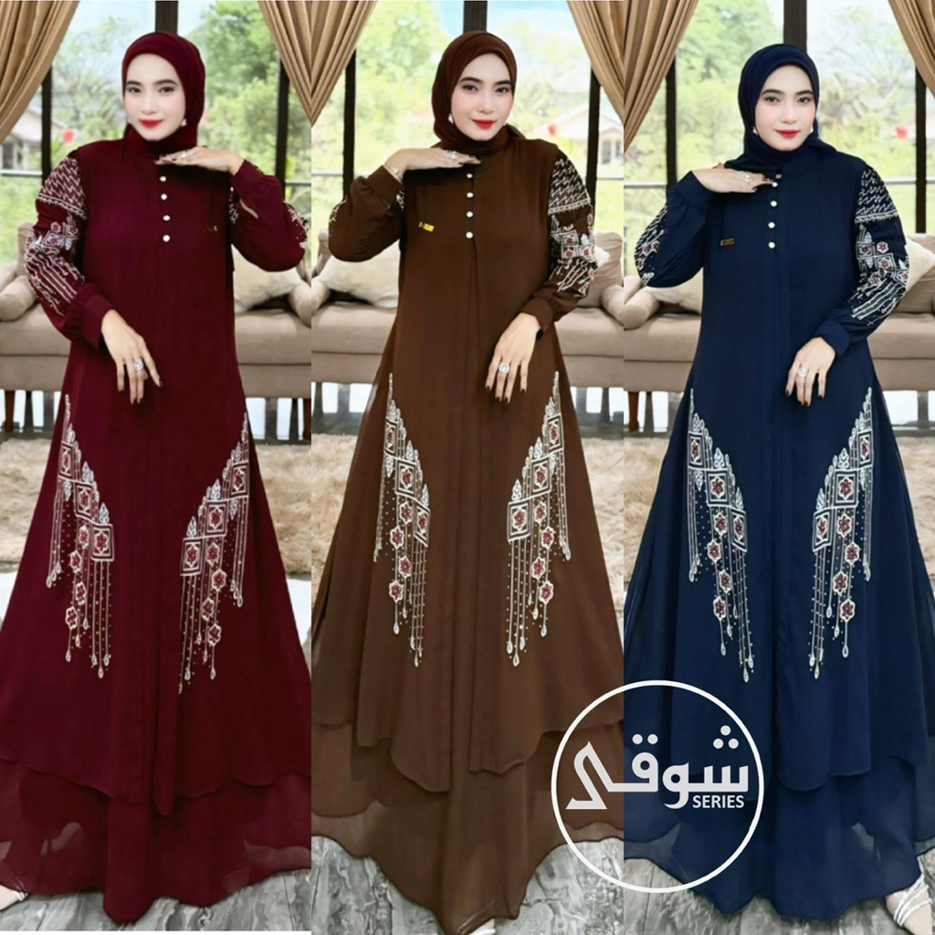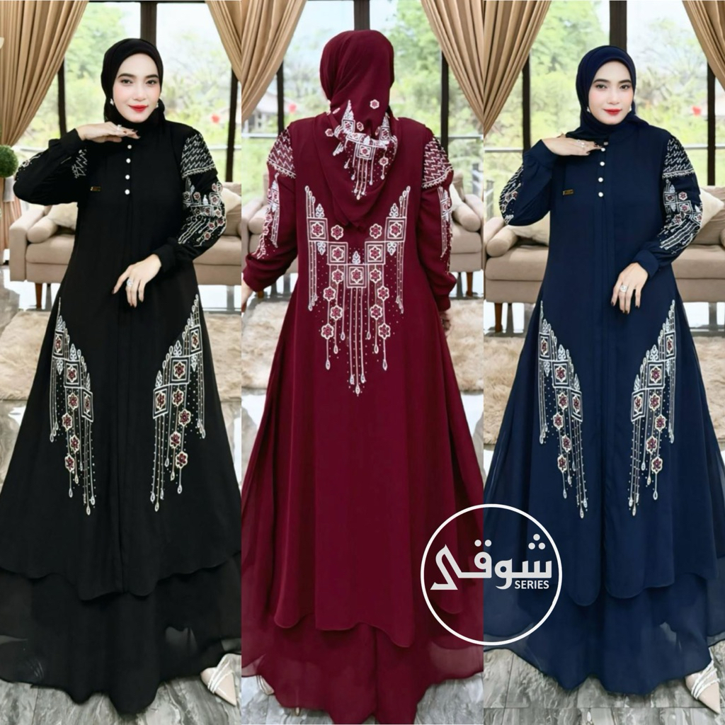 SYAUQI SERIES - Gamis Inner Outer Bordir Set Hijab Bahan Ceruty Babydoll Baju Wanita Terbaru