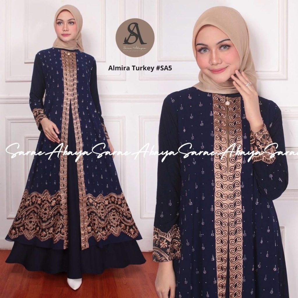 Sarae Abaya Turkey Premium Almira SA-5 Gamis Bordir Payet Ceruty Turki Hitam Mewah Elegan Ceruti