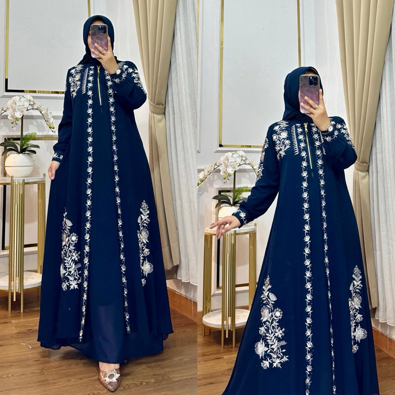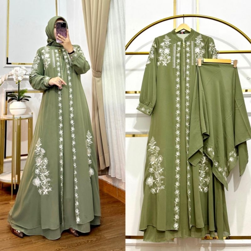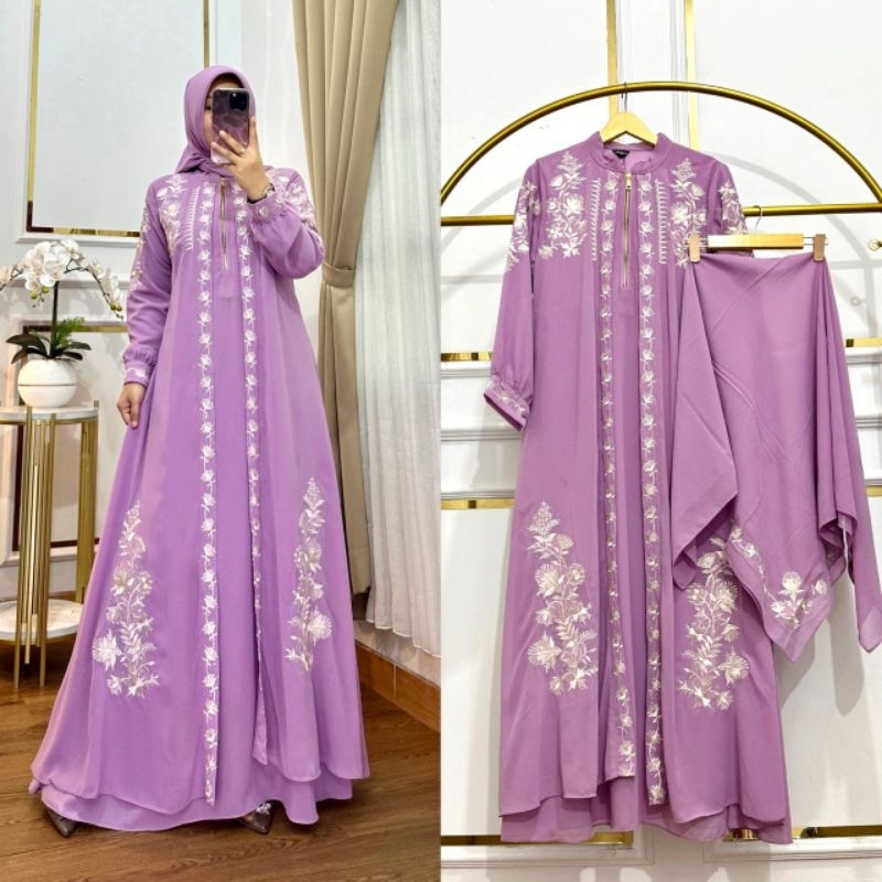 Gamis outer busui mix bordir dan set hijab matt ceruty babydoll