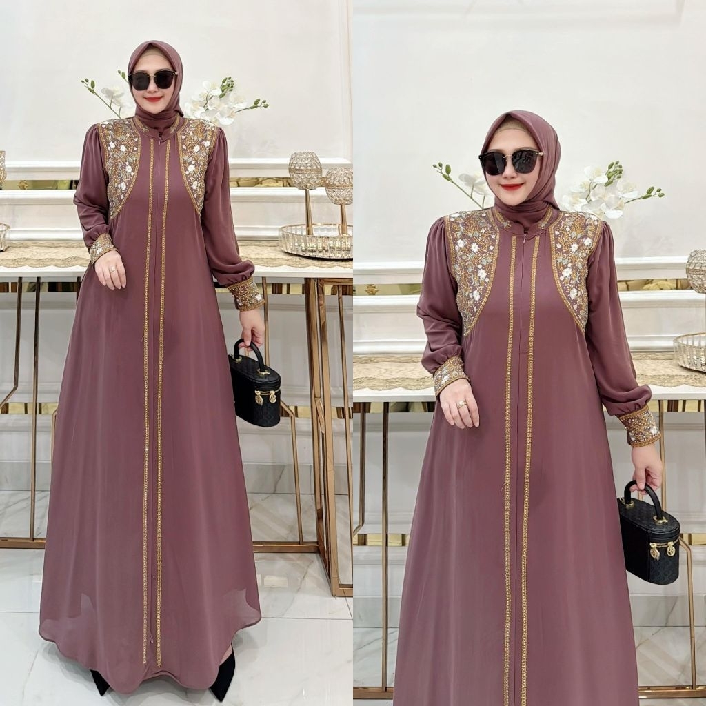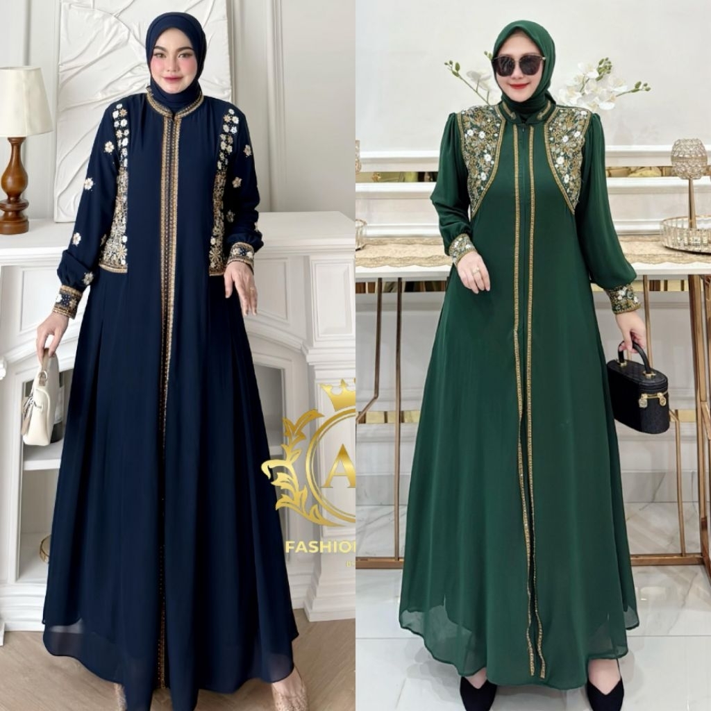 Gamis Laluna Set Hijab Segi Empat Kombinasi Bordir Swarosky Mewah Dan Elegan By, Aa fashion