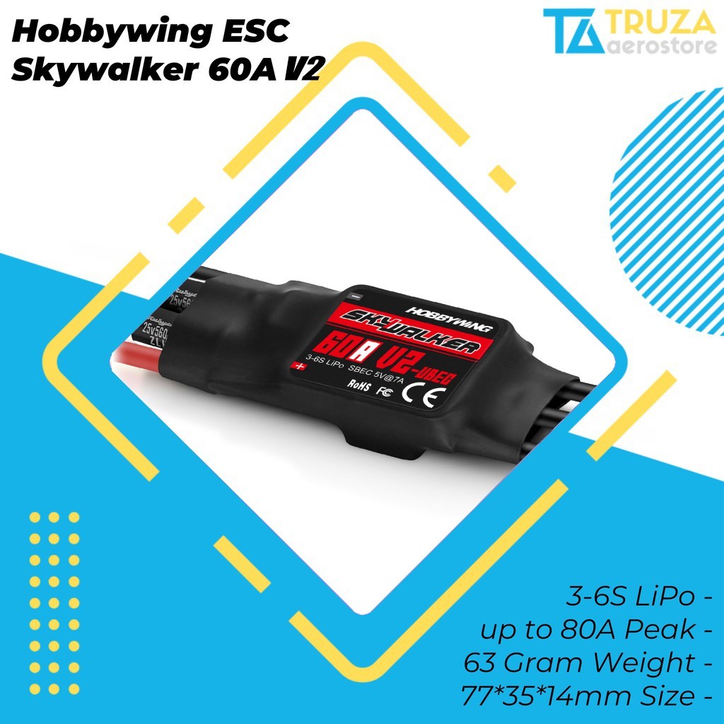 HOBBYWING SKYWALKER ESC 60A 3-6S V2 LiPo RC BRUSHLESS SPEED CONTROLLER PESAWAT