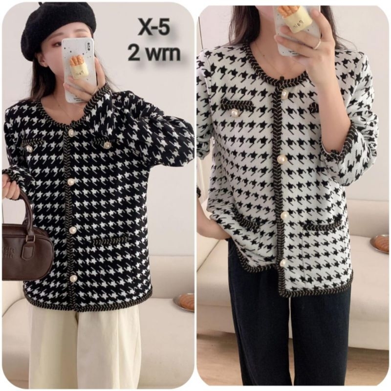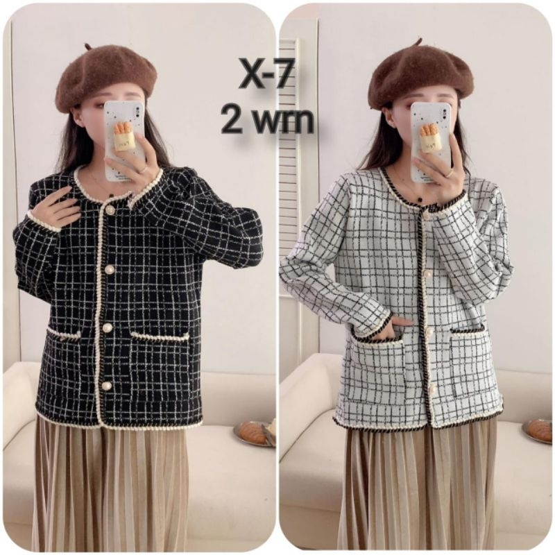 Blazer Tweed Wol Fashion Black Korean Minimalis