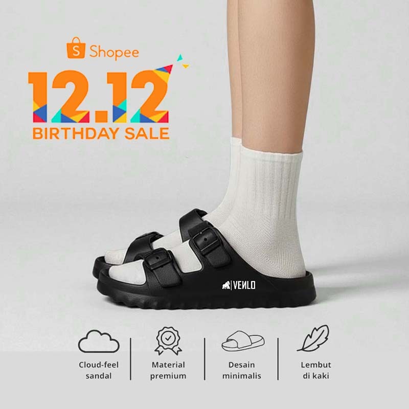 Venlo - Hero Black Sandal Pria Slop 2Strap Elastisitas Nyaman Anti Selip Dan Tali Dapat Disesuaikan