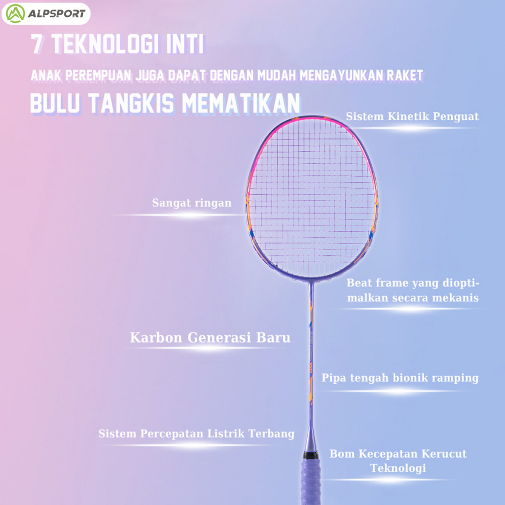Alpsport Gj Max 35Lbs 10U 52G Raket Bulutangkis Ungu/Hitam/Merah Senar Grip Terpasang Premium Serat Karbon Penuh Strung