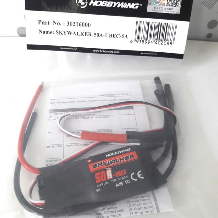 Original ESC Hobbywing Skywalker 50A 2S - 4S ubec 5V 5A RC pesawat Airplane Drone V2
