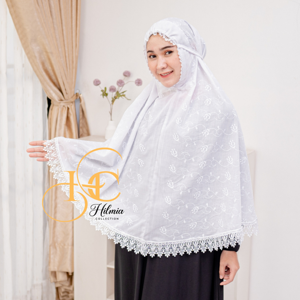 Kerudung Bergo Haji Dan Umroh Katun Bordir Premium | Hilmia