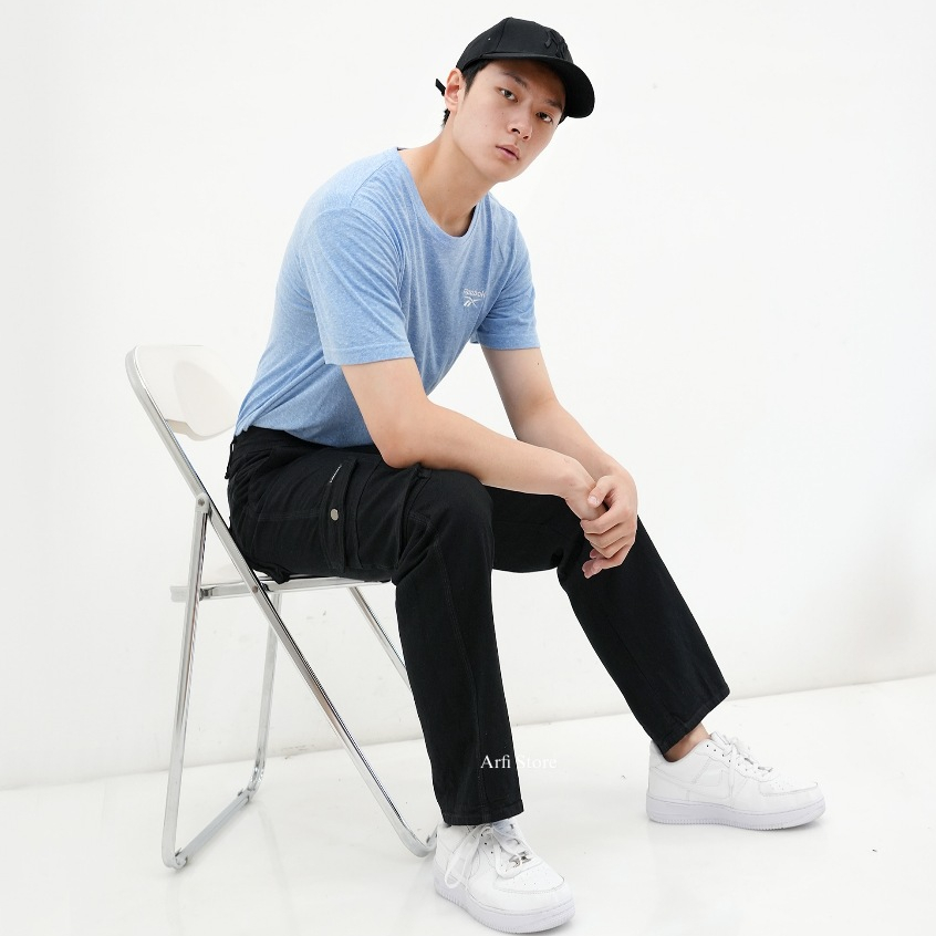 Vinarro - Celana Cargo Pria Tebal Bahan Semi Jeans Kimpol Tebal Adem Dan Halus Dewasa Katun Hitam Distro Cowok Cewek Arm