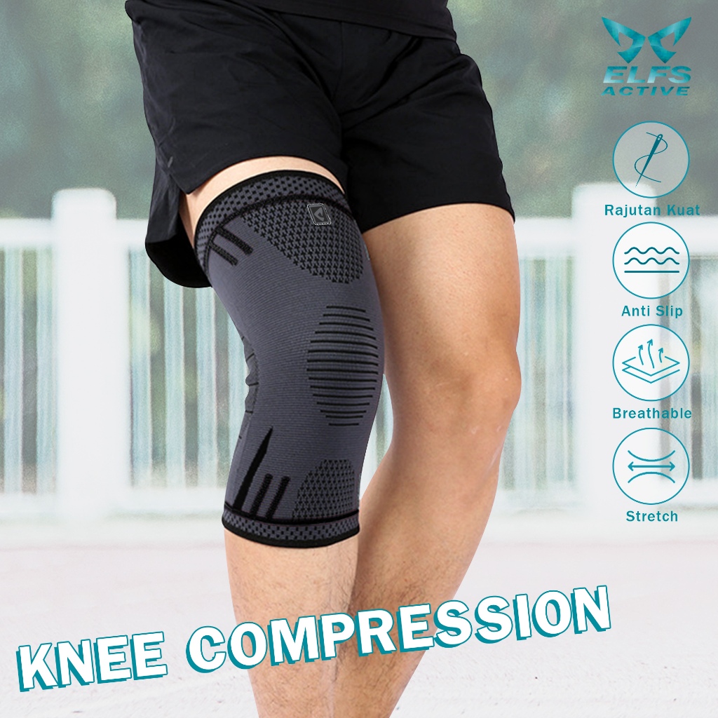 Elfs Active Knee Compression Pad Brace Support Pelindung Lutut Stretch