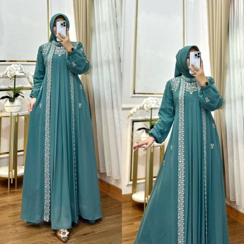 NEW ZENIA DRESS BY MEDINA GAMIS CERUTY BORDIR SET HIJAB UKURAN ALLSIZE JUMBO READY