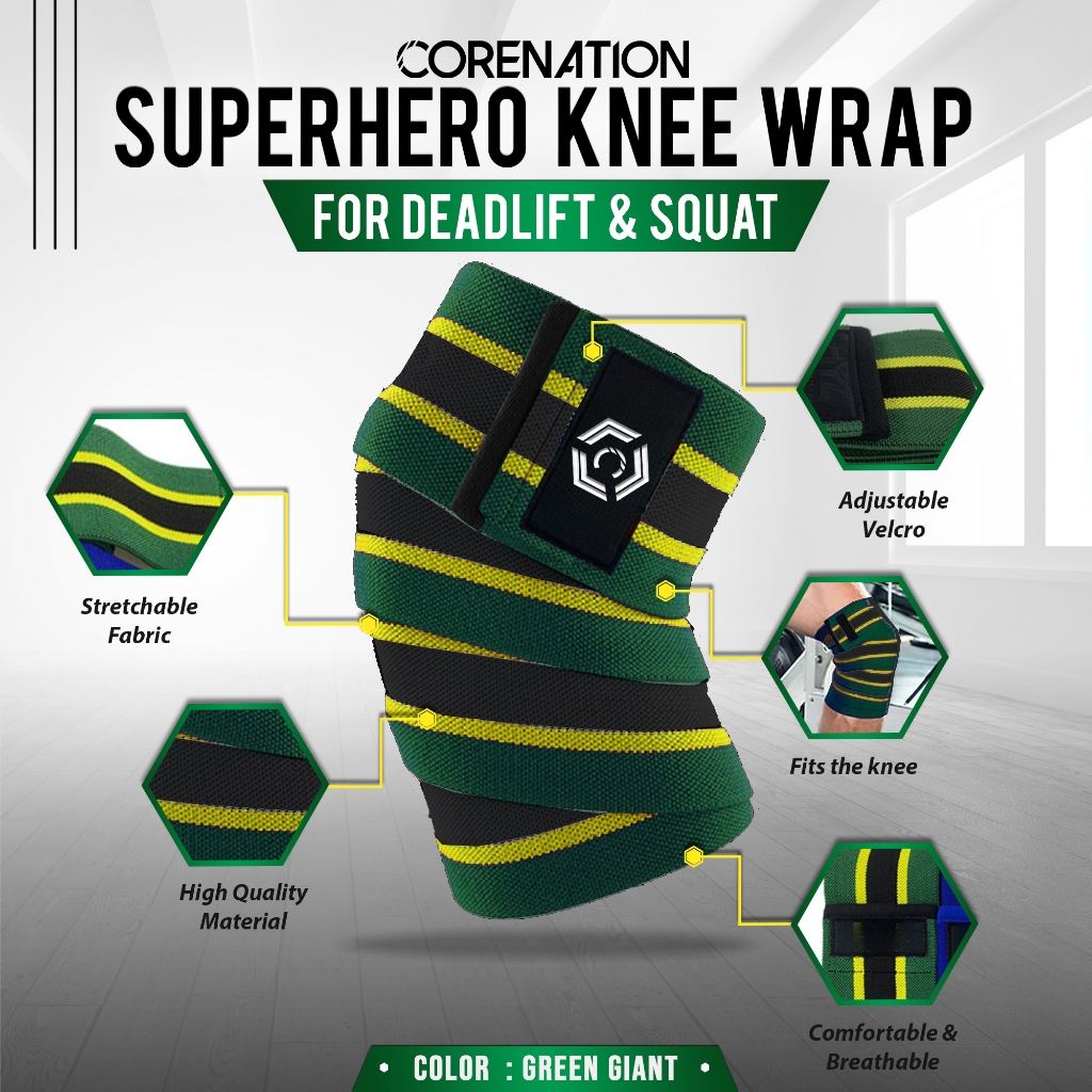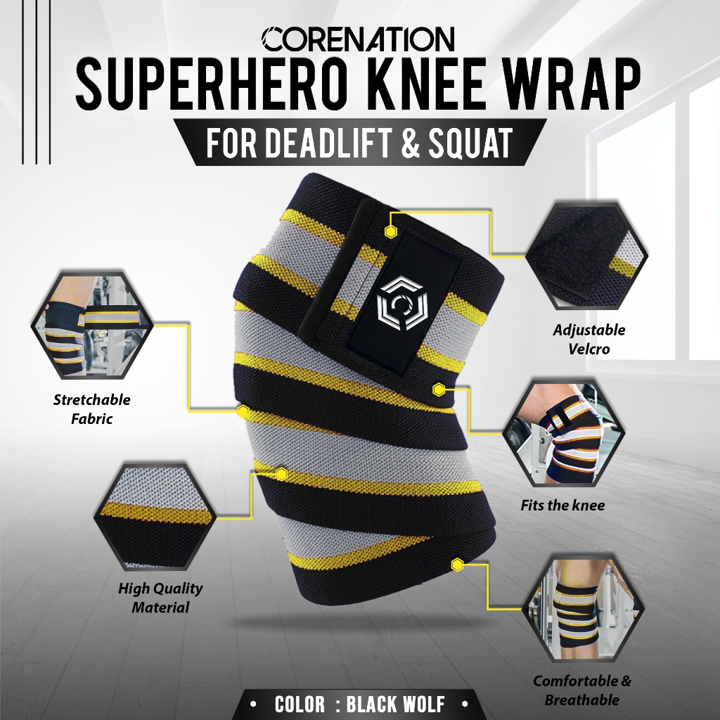 Corenation Super Hero Knee Wrap | Kneepad Support Strap Lutut Olahraga Bantalan Lutut Fitness Gym Sport