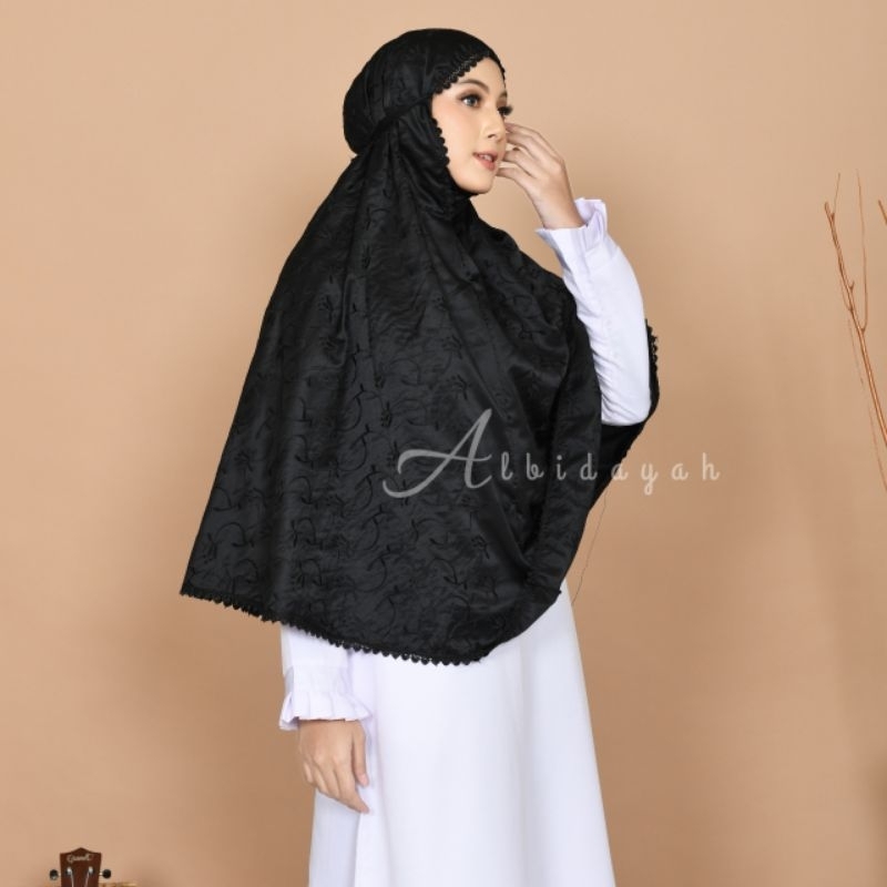 Bergo Haji Dan Umroh Bahan Sutra Bordir Bersaku Jumbo premium