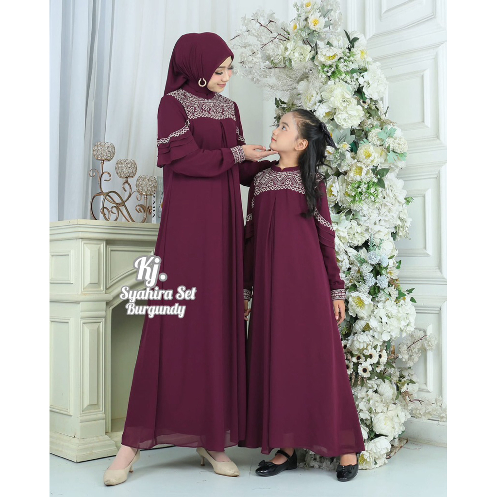 Gamis Syahira Set Hijab Original Khadijah Mode Pakaian Muslim Wanita Gamis Lebaran/gamismurah/gamisbordir
