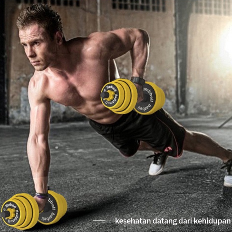 Dumbbell 10Kg Barbell Set Dumbbell Set Dumbbell Barbell 2 In 1 /Kuning Set Dumbbell Barbell