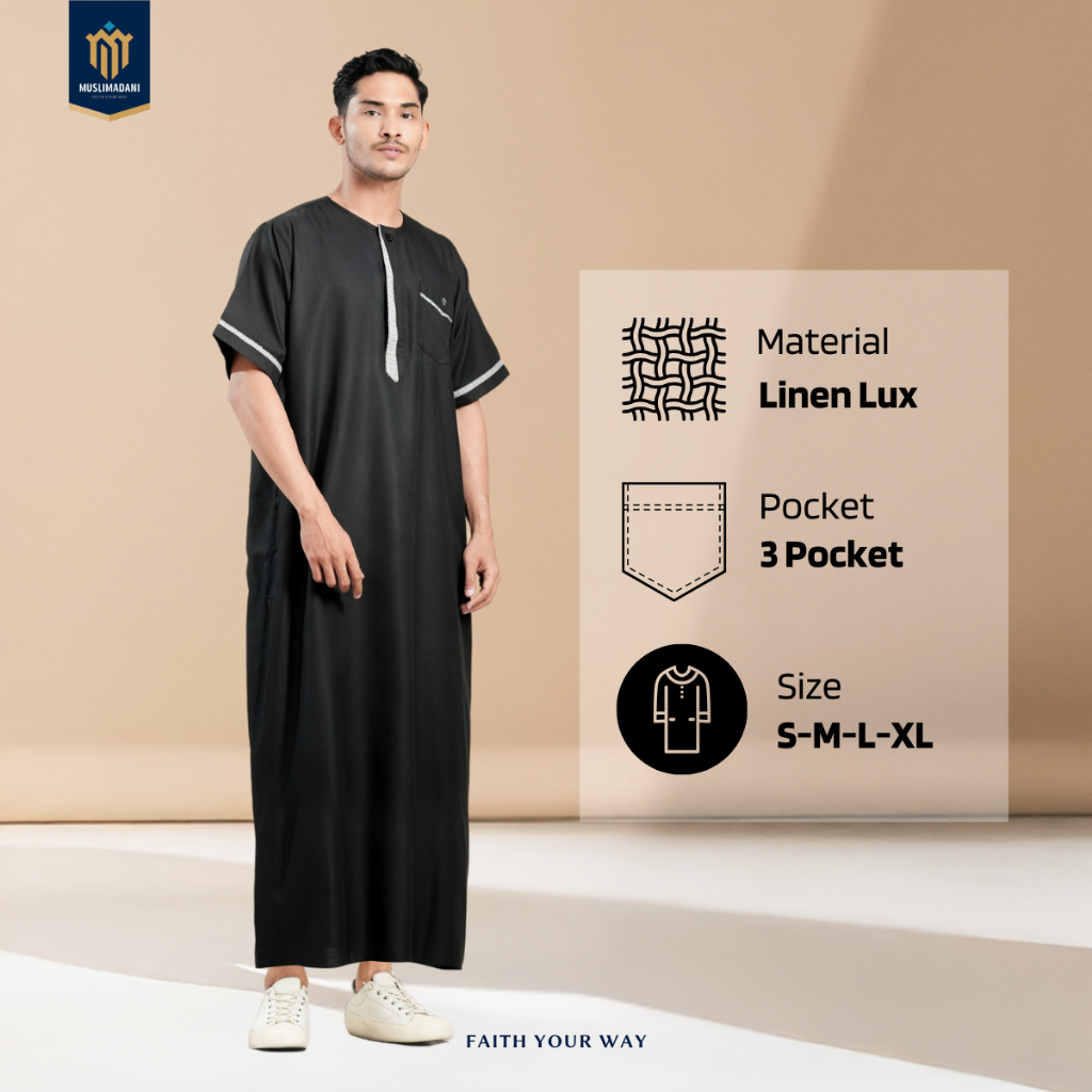 Muslimadani Jubah Dewasa NABIL Gamis Pria Lengan Pendek