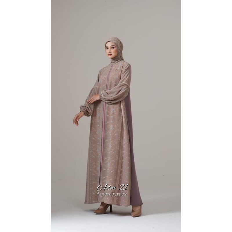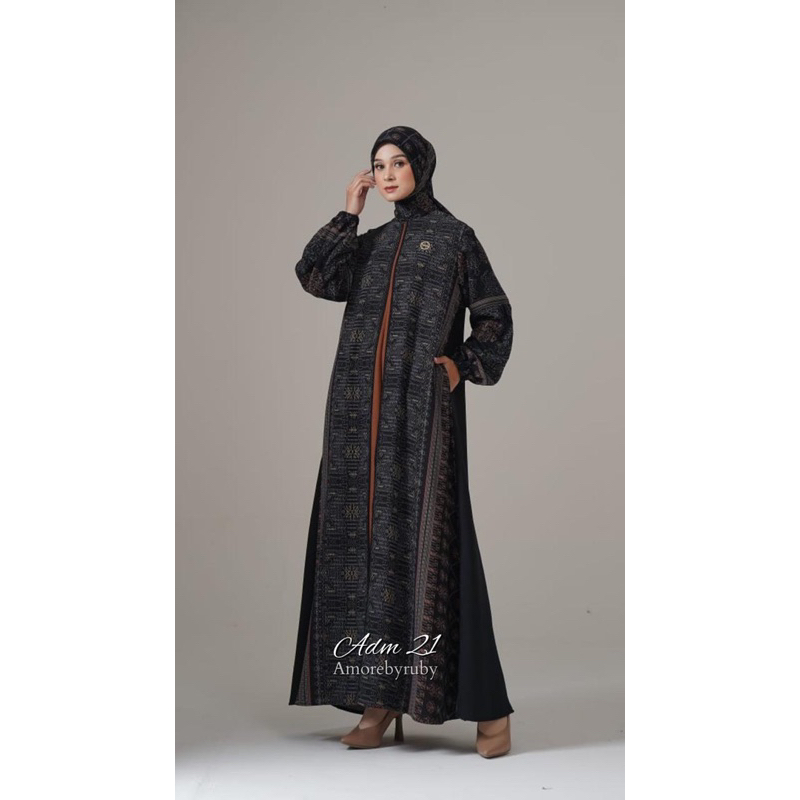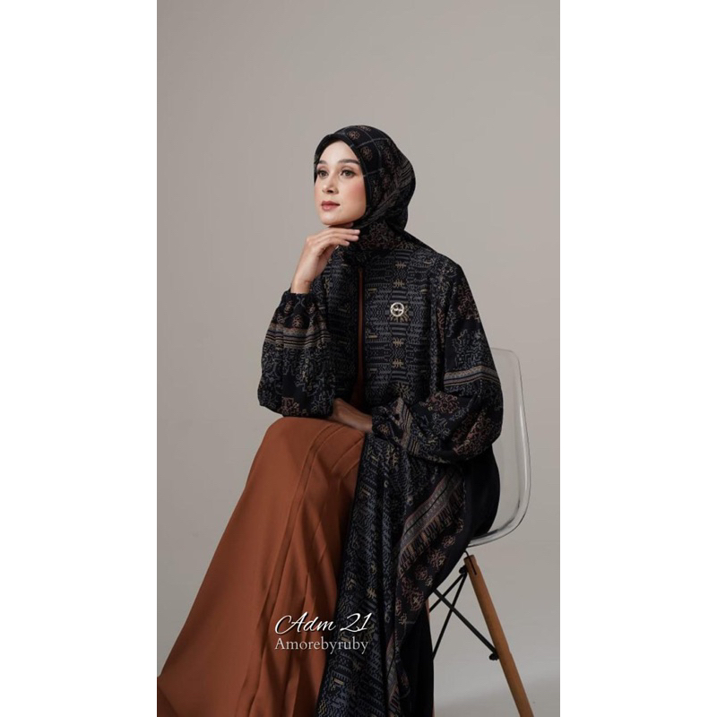 ADM 21 DRESS AMORE BY RUBY GAMIS MOTIF TRIBAL BAHAN CERUTI MIX CREPE BUSUI FRIENDLY LENGAN BALON RESLETING DEPAN WUDHU