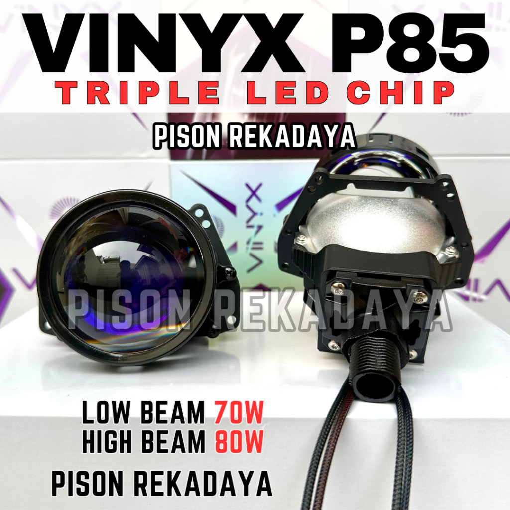 Paket Lengkap Projector Biled P85 Triple Led Proji Vinyx P85 3 Inch Lampu Motor Mobil Projie 68W/78W