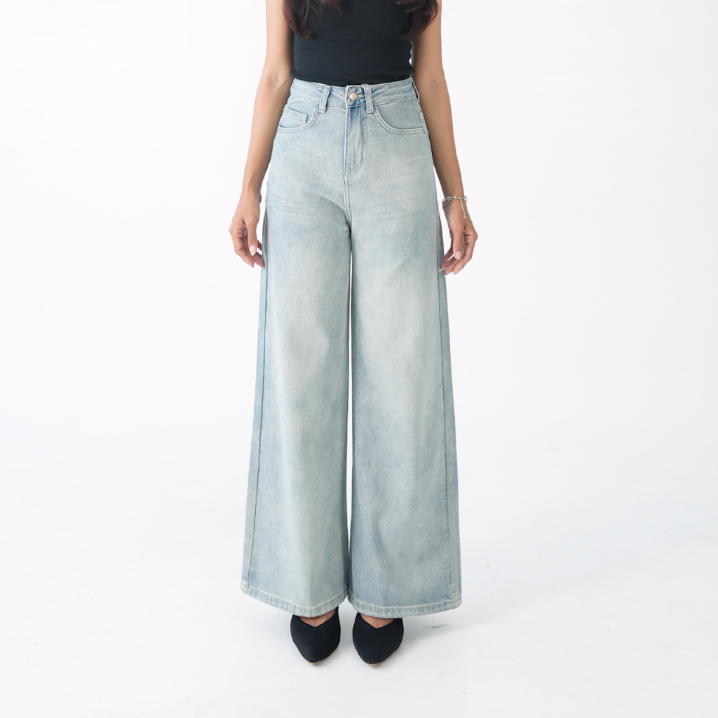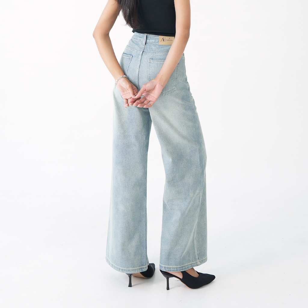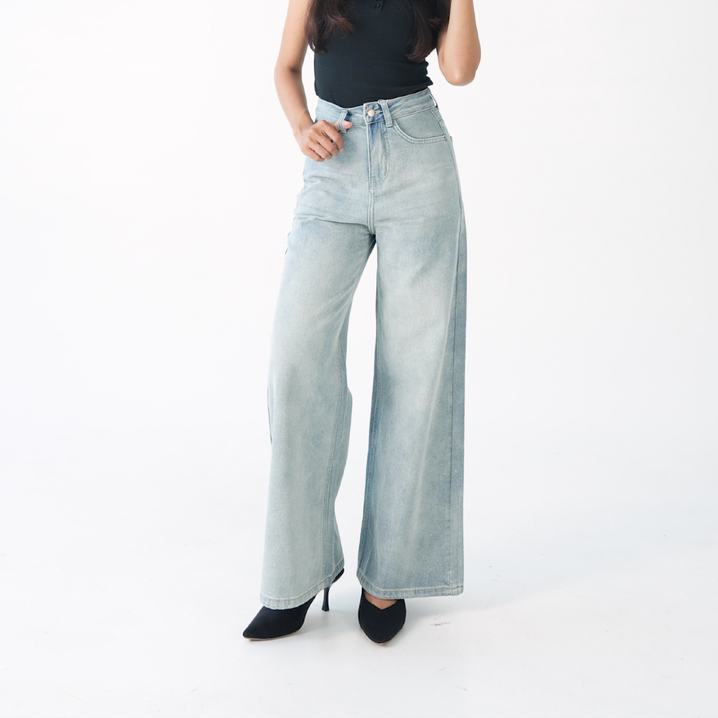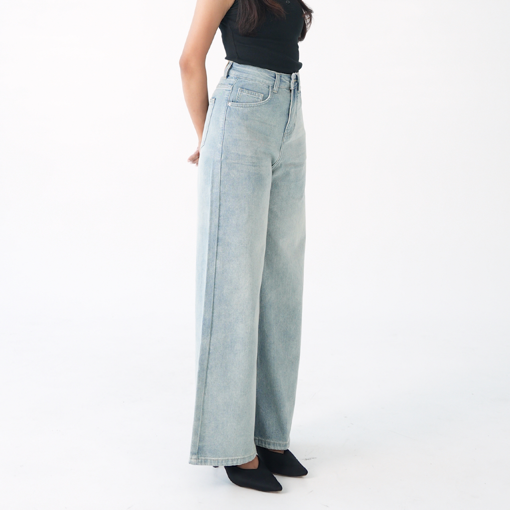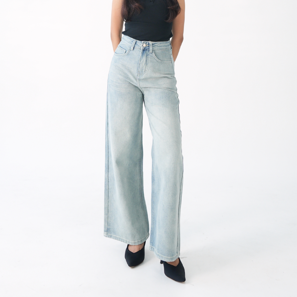 Adorela - Straight Jeans 8820 - Highwaist Celana Jeans Lurus Wanita Light Blue