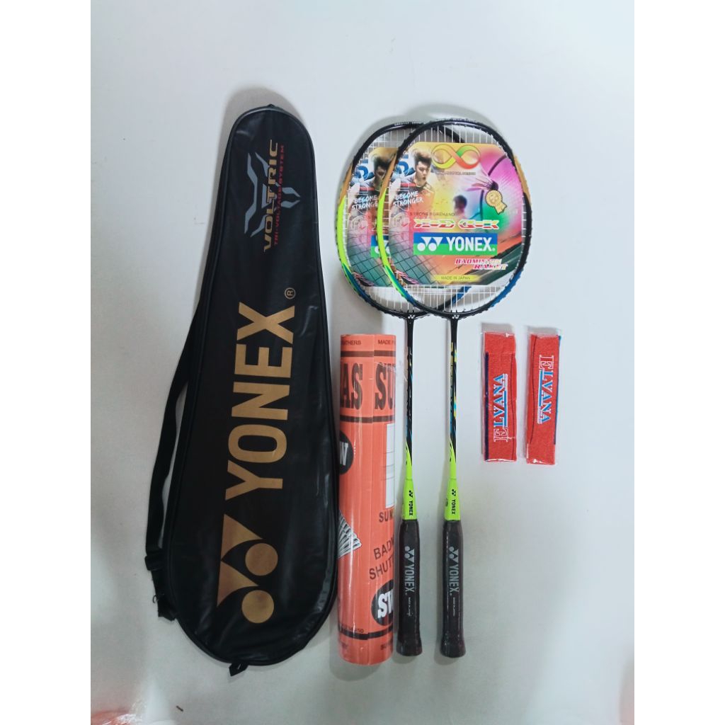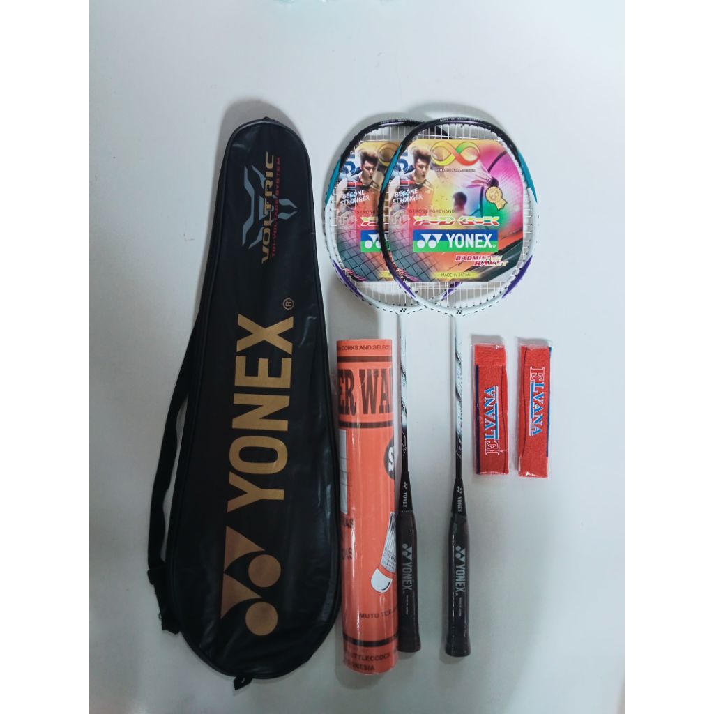 Raket Badminton Paket Lengkap 2 Raket 2 Grip 1 Tas & Bonus Kok Isi 12 Made In China