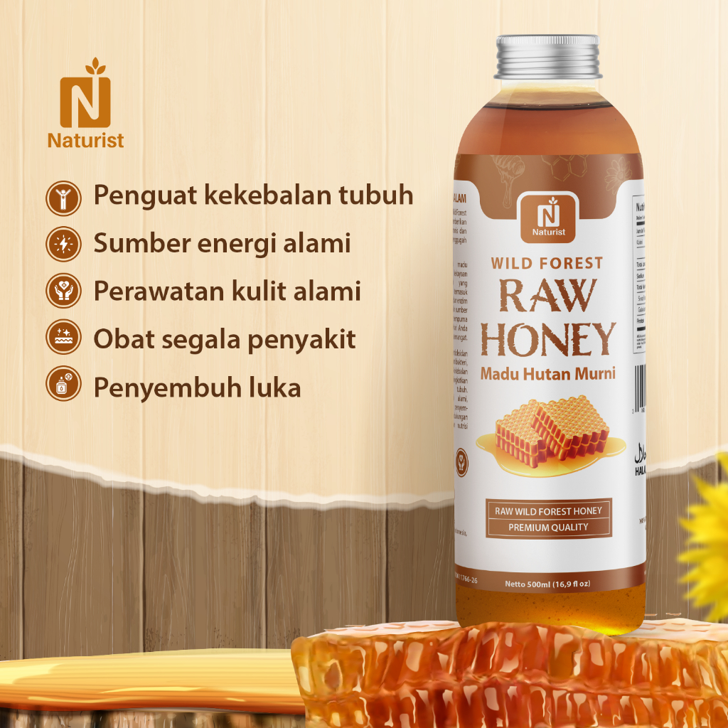 NATURIST Madu Hutan Murni 500ml Madu Asli 100 PERSEN Raw Honey Liar Tanpa Campuran Baik untuk Stamina