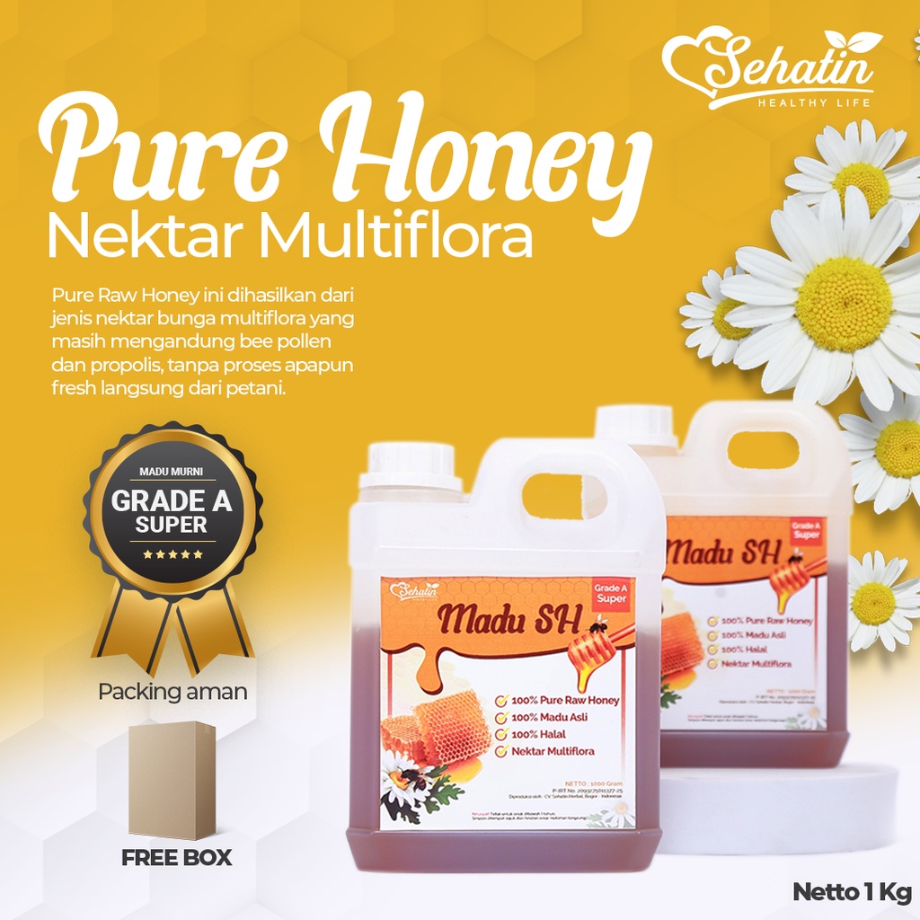 Sehatin Madu Murni Asli Multiflora 1 kg Original Grade A Super Natural Raw Honey - Pure Honey