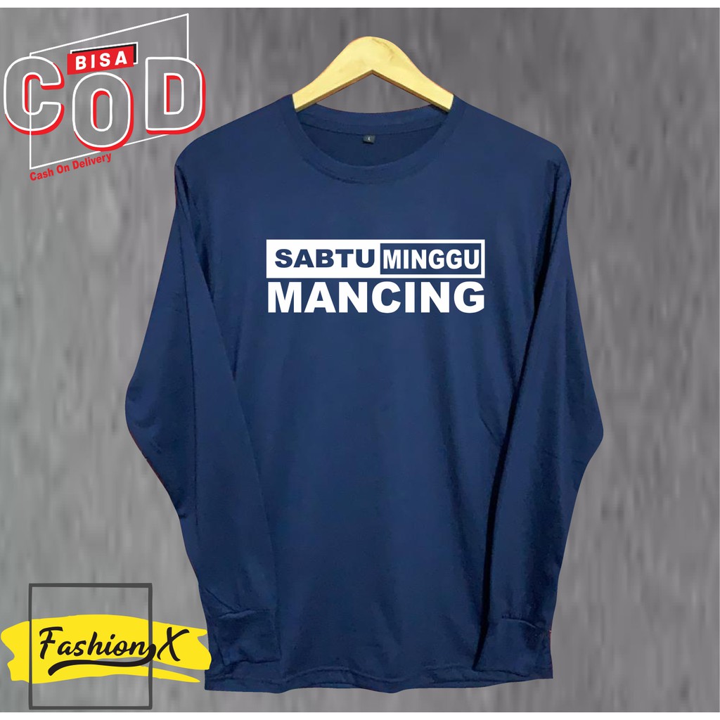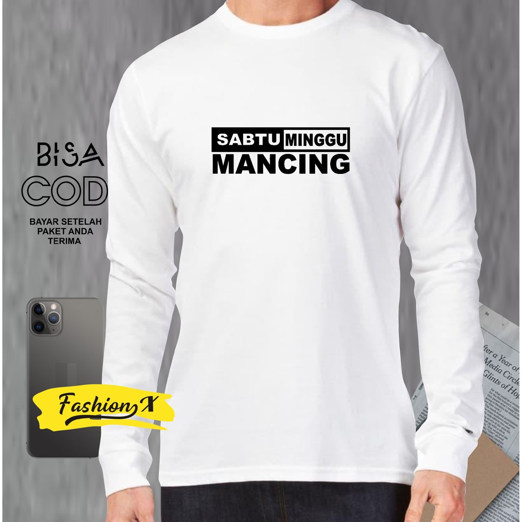 Kaos Pria Distro Lengan Panjang/Sabtu Minggu Mancing/Bandung Original Murah/Baju Oblong Katun 30S