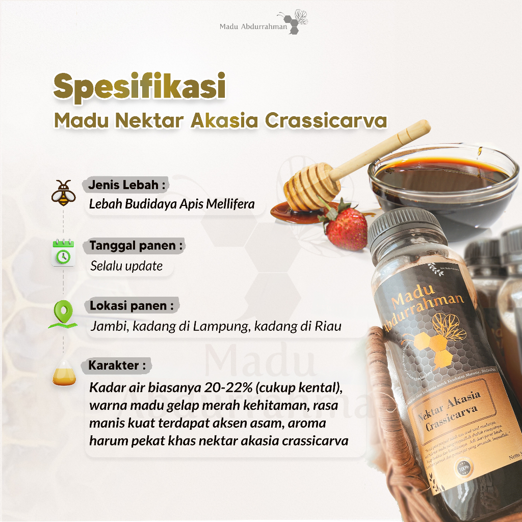 Madu Akasia Crassicarva (500g). Madu Abdurrahman 100 PERSEN MURNI & ASLI Raw Honey
