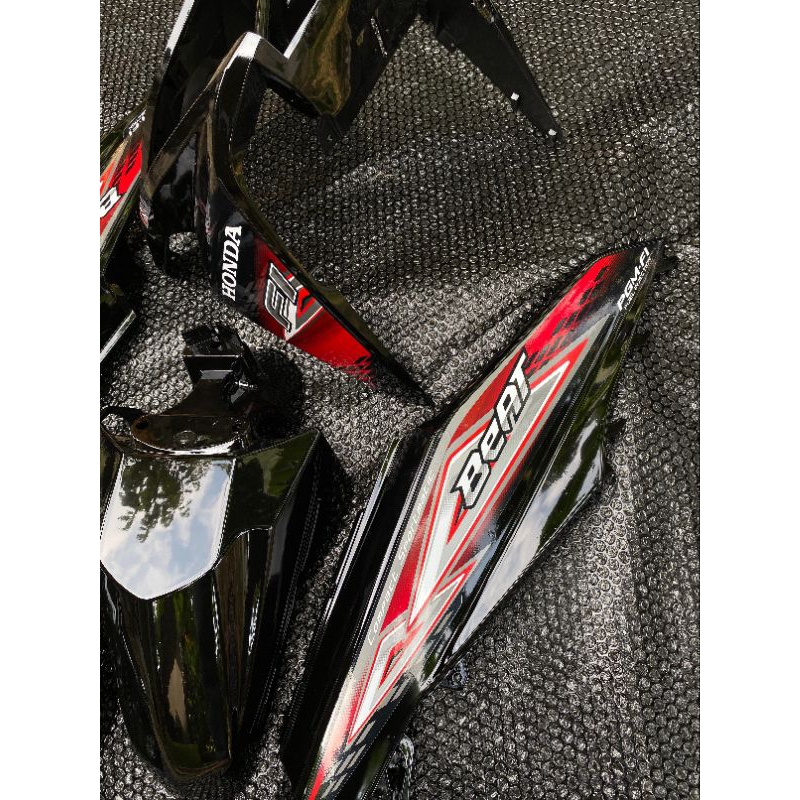 Cover full body halus Honda beat fi 2013-2016 hitam plus striping