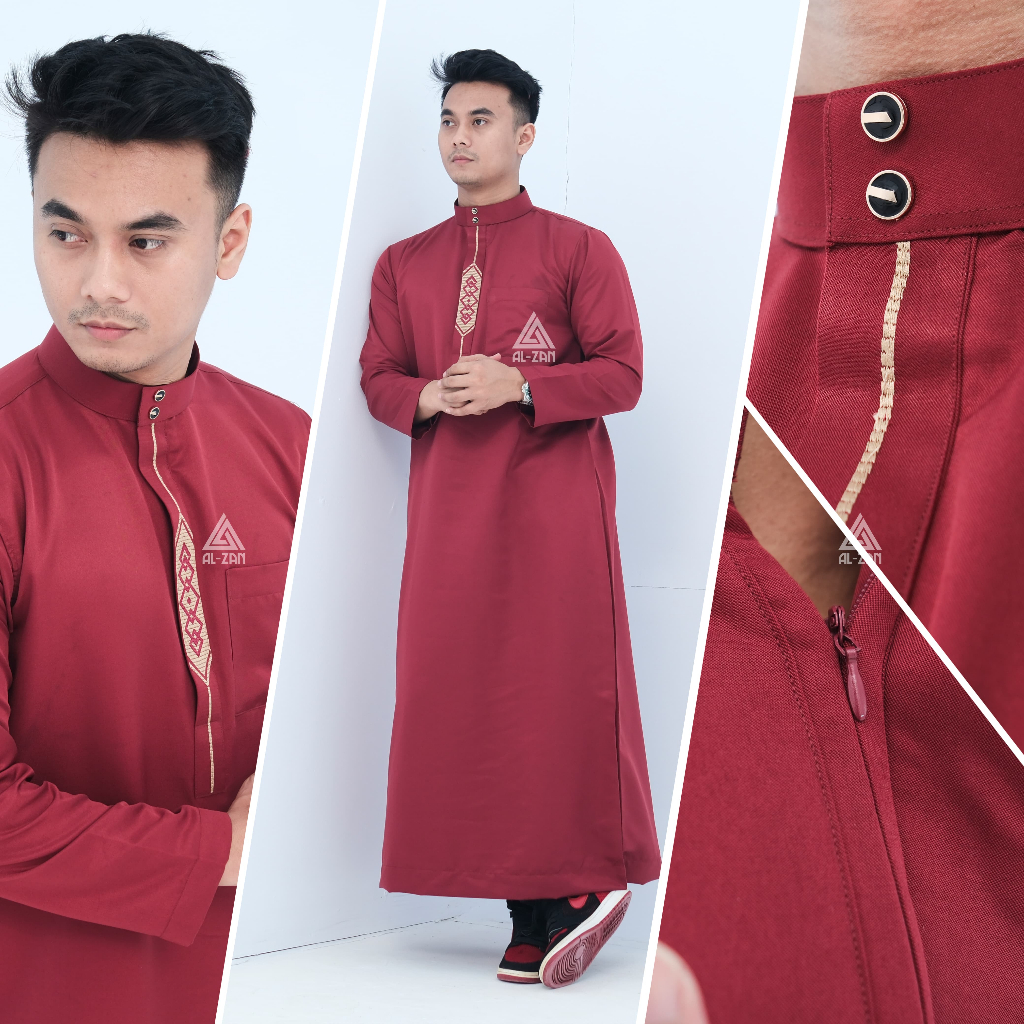 Jubah pria muslim gamis pria muslim lengan panjang bordir jubbah dewasa katun toyobo hitam putih busana muslim pria mode