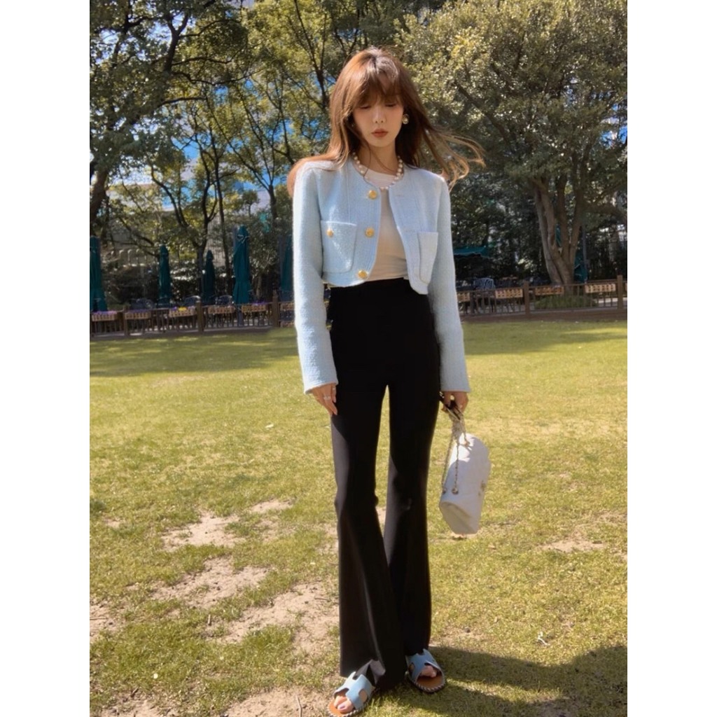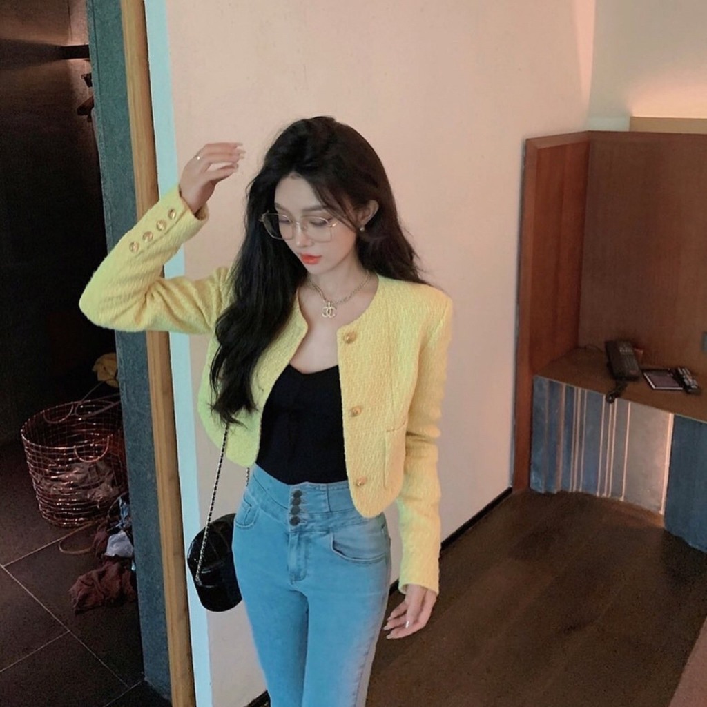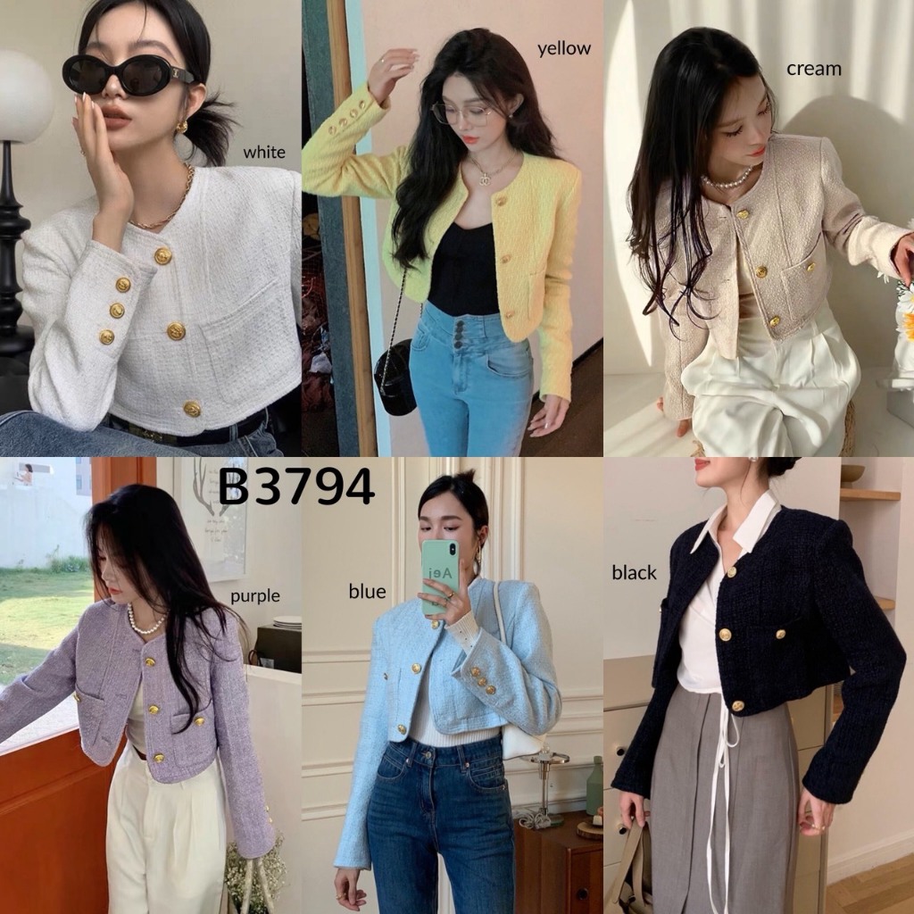 Olivia Buttons Crop Tweed Blazer / er Blazer Premium Wanita B3794