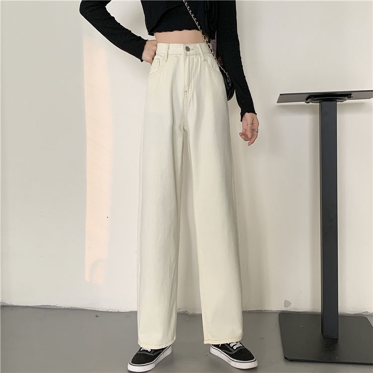 JEANS HIGHWAIST PANTS DENIM BLACK/BLUE/APRICOT LOOSE KOREA