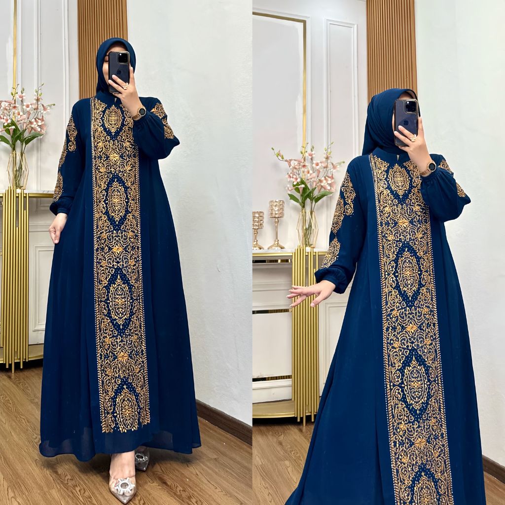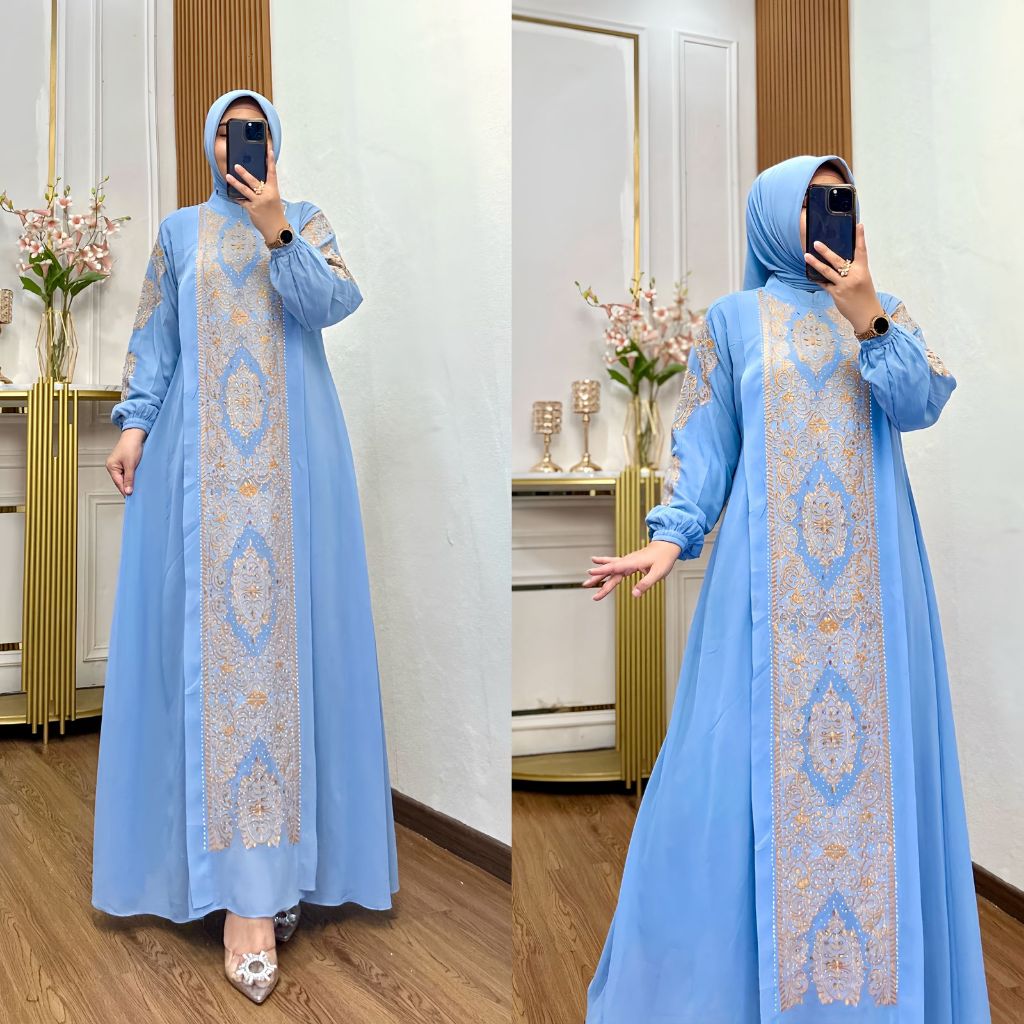 Gamis bordir set hijab terbaru kekinian gamis pesta dan kondngan terkini cocok untuk lebaran