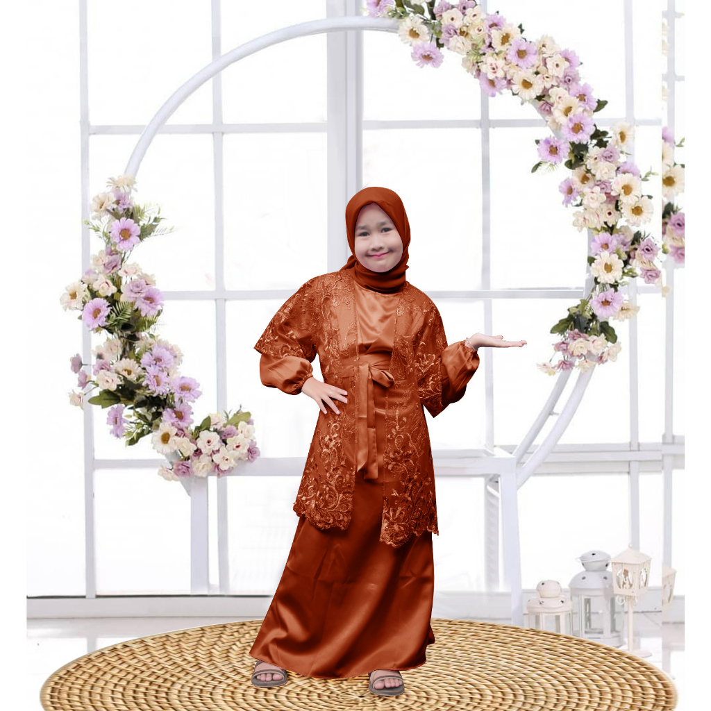 Lucianna Kid/Gamis Pesta Anak-Anak/ Dress Set Cardi Outer Anak Tanggung/Fashion Muslim/Model Kekinian