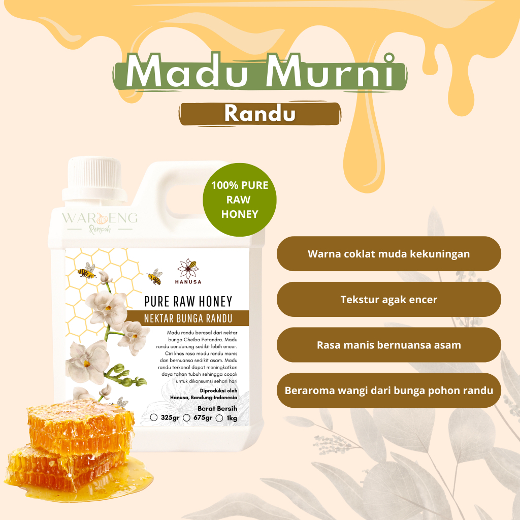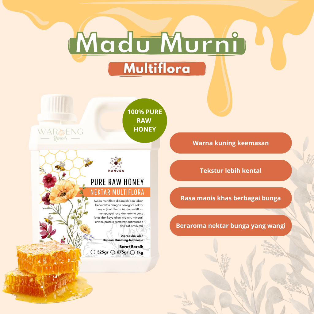 Hanusa - 1kg Madu Murni Varian Raw Honey Asli / Waroeng Rempah Murah