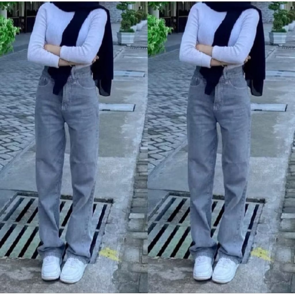 Celana Uni Loose Jeans Korean Style Wanita Non Stretch